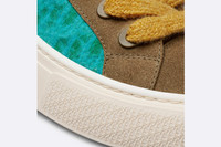 New for Fall 2023, the B33 sneaker reframes the timeless tennis shoe with a play on volume in a modern silhouette. Demonstrating the House's exceptional savoir-faire, it features a new brushed-knit mohair material with an ultra-soft touch and layered pop colors. Enhanced by brown suede inserts, it is distinguished by a padded tongue revealing the embossed Dior signature and a set of wide orange mohair laces with matte brown-finish brass eyelets. The cream-colored rubber sole with the Dior Oblique motif is embellished with a Dior 30 Avenue Montaigne signature at the back. The sneaker will lend a modern touch to all casual looks. The pair is equipped with a secure NFC chip, placed under the sole of the right foot, which provides access to a platform to obtain its Digital Certificate of Authenticity. Holders of the certificate benefit from news on future collections. For the first time in Dior's history, each pair in this limited series is linked to its own Digital Twin, a unique and secure digital creation on the Ethereum blockchain. The Digital Twin — available 33 days after obtaining the certificate — offers perks and early access to seasonal products, starting with the Spring 2024 collection. The product and relevant information are updated on The Aura Blockchain Consortium platform to register and ensure authenticity. - Turquoise Dior Oblique mohair - Brown suede inserts - Dior signature embossed on tongue - Embossed Dior 30 Avenue Montaigne signature on the back - Low-top - Matte-finish brass eyelets with mohair lace-up closure - Padded ankle - Rear tab - Leather lining - Cream Dior Oblique rubber sole - Warped Cannage and Dior Oblique motif outsole - Set of brown cotton laces provided - Made in Italy - Limited and numbered pair: 470 pieces with matching Digital Twin - Digital Certificate of Authenticity Size & Fit - The style fits true to size: we recommend ordering your normal shoe size - For more information, please review the size guide