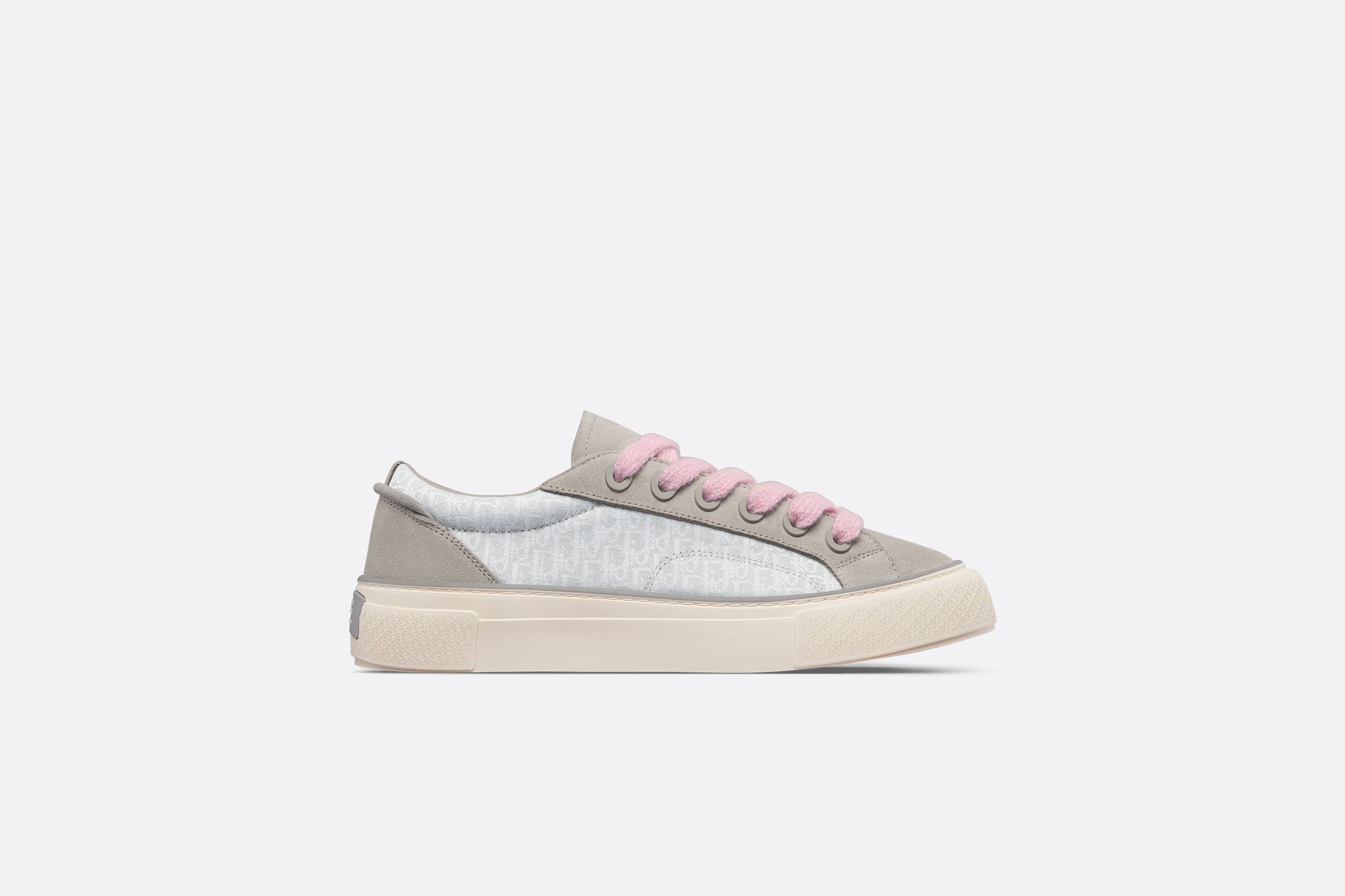 - Gray and white Dior Oblique jacquard - Gray suede inserts - Dior signature embossed on tongue - Embossed Dior 30 Avenue Montaigne signature on the back - Low-top - Matte-finish brass eyelets with mohair lace-up closure - Padded collar - Rear tab - Leather lining - Cream Dior Oblique rubber sole - Warped Cannage and Dior Oblique motif outsole - Set of gray cotton laces provided - Made in Italy - Limited pair - Digital Certificate of Authenticity Size & Fit - The style fits true to size, we recommend ordering your normal shoe size - Weight: approximately 535 g / 19 ounces - For more information, please review the size guide