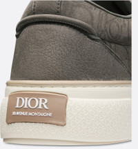 The B33 Spin sneaker is a new take on the timeless tennis shoe with a play on volume in a contemporary silhouette. Highlighting the virtuosity of the ateliers, the style is crafted in gray nubuck, enhanced by tonal Dior Gravity nubuck panels featuring a delicately embossed iconic Dior Oblique motif as well as by tonal mohair laces with matte-finish brass eyelets. The Dior Oblique rubber sole is adorned with a contrasting Dior 30 Avenue Montaigne signature on the back and beige trim. The sneaker will lend a contemporary touch to casual looks. - Main composition: Taurillon leather - Lambskin and technical fabric lining - Dior signature embossed on the tongue - Beige Dior 30 Avenue Montaigne signature on the back - Low top - Gray mohair lace-up closure with matte-finish brass eyelets - Padded collar - Rear tab - Cream Dior Oblique rubber sole with beige trim - Warped Cannage and Dior Oblique outsole - Dust bag included - Additional set of gray cotton laces provided - This product may exhibit differences in color inherent to the leather's production and processing, which highlight its unique character - Made in Italy Size & Fit - The style fits true to size, we recommend ordering your normal shoe size - Using our personalized tool will provide you with the best size recommendation - For more information, please review the size guide