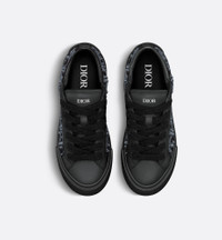 The B33 Spin sneaker reframes the timeless tennis shoe with a play on volume in a modern silhouette. Crafted in black smooth calfskin with a gray Dior Oblique embroidered panel, it is distinguished by a padded tongue featuring an embossed Dior signature, wide black mohair laces and matte-finish tonal brass eyelets. The black Dior Oblique rubber sole is enhanced by a contrasting Dior 30 Avenue Montaigne signature on the rear. The sneaker will lend a contemporary touch to casual looks. - Main composition: cotton, calfskin and mohair - Calfskin and technical fabric lining - Gray Dior Oblique raised embroidery - Dior signature embossed on the tongue - Dior 30 Avenue Montaigne signature on the back - Low top - Black mohair lace-up closure with matte-finish brass eyelets - Padded collar - Rear tab - White Dior Oblique rubber sole - Warped Cannage and Dior Oblique outsole - Dust bag included - Additional set of black cotton laces provided - Made in Italy - Limited and numbered edition: 470 pieces Size & Fit - The style fits true to size, we recommend ordering your normal shoe size - Weight: 520 g / 18.5 ounces - Weight details may vary depending on the product's material - Using our personalized tool will provide you with the best size recommendation - For more information, please review the size guide