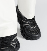 The B35 NXXT sneaker stands out with futuristic appeal. The openwork architectural sole with the Cannage motif demonstrates the House's mastery of innovation. The sole is crafted to be voluminous yet lightweight, for remarkable stability and a silhouette with a dynamic feel. The metallic-finish black technical fabric upper and two-layer technical mesh create a subtle contrast reminiscent of a running shoe from the 1990s. The graphic lines and high-frequency Dior and 47 signatures highlight the contemporary look, while the Dior B35 patches on the tongue and heel counter add the finishing touches to the exceptional style. Thanks to its interior elastic band, the sneaker ensures optimal comfort and stability. - Main composition: technical fabric and mesh - Technical mesh lining - Dior and 47 signatures on the sides - Dior B35 signature on the tongue and heel counter - Low top - Lace-up closure - Interior elastic band for secure fit - Openwork Cannage outsole with Dior signature - Welded construction - Dust bag included - Additional set of black cotton laces provided - Made in Italy Size & Fit - The style fits true to size, we recommend ordering your normal shoe size - Using our personalized tool will provide you with the best size recommendation - For more information, please review the size guide