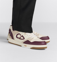 The B57 low-top sneaker is a new House essential. Crafted in burgundy and cream smooth calfskin with beige suede, the style is adorned with a burgundy leather CD signature on the side. The sneaker is enhanced by various hallmark details on the tongue, sole and rear, while perforated detailing, topstitching and a rubber insert accentuate its athletic appeal. Completed by a two-tone rubber sole, the sneaker will elevate any favorite outfit. - Main composition: calfskin and technical fabric - Technical mesh lining - Burgundy leather CD signature on the sides - Dior B57 signature tongue - CD signature on the heel - Low top - Cushioned ankle - Lace-up closure with CD signature eyelets - Perforated detailing on the toe - Brown and cream rubber outsole with Dior signature - Welded, side-sewn construction - Additional set of cream cotton laces provided - Made in Italy Size & Fit - The style fits true to size, we recommend ordering your normal shoe size - Weight: 410 g / 14.5 ounces - Using our personalized tool will provide you with the best size recommendation - For more information, please review the size guide