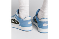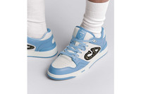 Debuting for Fall 2024, the B57 low-top sneaker is a new House essential. Crafted in light blue and white smooth calfskin, the style is adorned with a beige and black Dior Oblique jacquard CD signature on the sides. The sneaker is enhanced by various hallmark details on the tongue, sole and rear, while perforated detailing, topstitching and a rubber insert accentuate its athletic appeal. Completed by a two-tone rubber sole, the sneaker will elevate any favorite outfit. - Light blue and white smooth calfskin - CD signature in beige and black Dior Oblique jacquard on the sides - Dior B57 signature tongue - CD signature on the heel - Low top - Cushioned ankle - Contrasting lace-up closure with two-tone CD signature eyelets - Perforated detailing on the toe - Technical mesh lining - Light blue and white rubber outsole with Dior signature - Welded, side-sewn construction - Additional set of white cotton laces provided - Made in Italy Size & Fit - The style fits true to size, we recommend ordering your normal shoe size - Weight: 410 g / 14.5 ounces - Using our personalized tool will provide you with the best size recommendation - For more information, please review the size guide