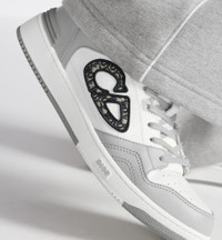 Introduced for Fall 2024, the B57 low-top sneaker is a new House essential. Crafted in Dior gray and white smooth calfskin, the style is adorned with a beige and black Dior Oblique jacquard CD signature on the sides. The sneaker is enhanced by various hallmark details on the tongue, sole and rear, while perforated detailing, topstitching and a rubber insert accentuate its athletic appeal. Completed by a two-tone rubber sole, the sneaker will elevate any favorite outfit. - Dior gray and white smooth calfskin - CD signature in beige and black Dior Oblique jacquard on the sides - Dior B57 signature tongue - CD signature on the heel - Low top - Cushioned ankle - Contrasting lace-up closure with two-tone CD signature eyelets - Perforated detailing on the toe - Technical mesh lining - Dior gray and white rubber outsole with Dior signature - Welded, side-sewn construction - Additional set of white cotton laces provided - Made in Italy Size & Fit - The style fits true to size, we recommend ordering your normal shoe size - Weight: 410 g / 14.5 ounces - Using our personalized tool will provide you with the best size recommendation - For more information, please review the size guide