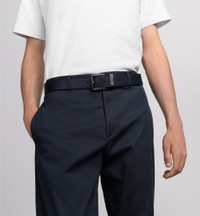 Combining elegance and modernity, the belt is crafted in navy blue grained calfskin and is embellished with an antique silver-finish brass pin buckle. Featuring an adjustable length, the 35-mm (1.4-inch) belt can be paired with any casual attire. - Pin buckle - Dior signatures engraved on the belt loop and interior - Antique silver-finish brass - 85% calfskin, 15% brass - Dust bag included - Made in Italy Size & Fit - Width: 35 mm / 1.4 inches - Using our personalized tool will provide you with the best size recommendation - For more information, please review the size guide