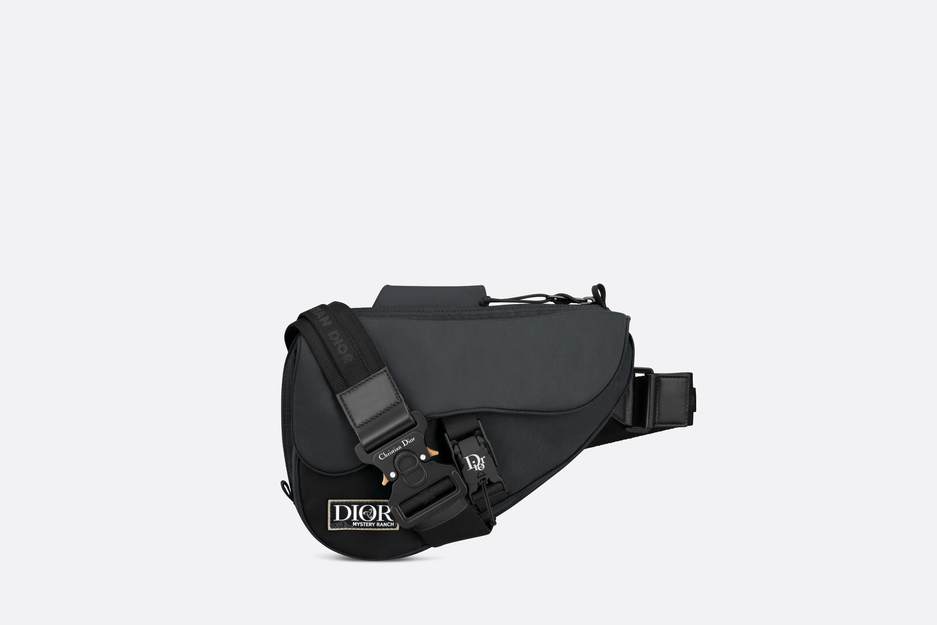 The Saddle bag reframes the House's classic piece in an exclusive collaboration with MYSTERY RANCH. Crafted in black nylon, the style is embellished with a leather patch and magnetic buckle signed Dior by Mystery Ranch. The mesh back adorned with the Dior signature features a rear zip compartment for guaranteed comfort. The magnetic flap with iconic lines conceals a zip closure to securely store all the essentials. The adjustable Christian Dior jacquard strap allows the bag to be worn over the shoulder or as a crossbody. - Black nylon - Dior by Mystery Ranch leather patch - Embossed Dior signature on interior - Dior by Mystery Ranch magnetic flap with magnetic buckle - Adjustable nylon jacquard Christian Dior shoulder strap - Aluminum buckle with Christian Dior signature and CD letters - Back of bag reinforced with quilted technical knit featuring the Dior signature - Dust bag included - Made in Italy Size & Fit - Dimensions: 26 x 19 x 4.5 cm / 10 x 7.5 x 2 inches (Length x Height x Width) - The size is suitable for all phones