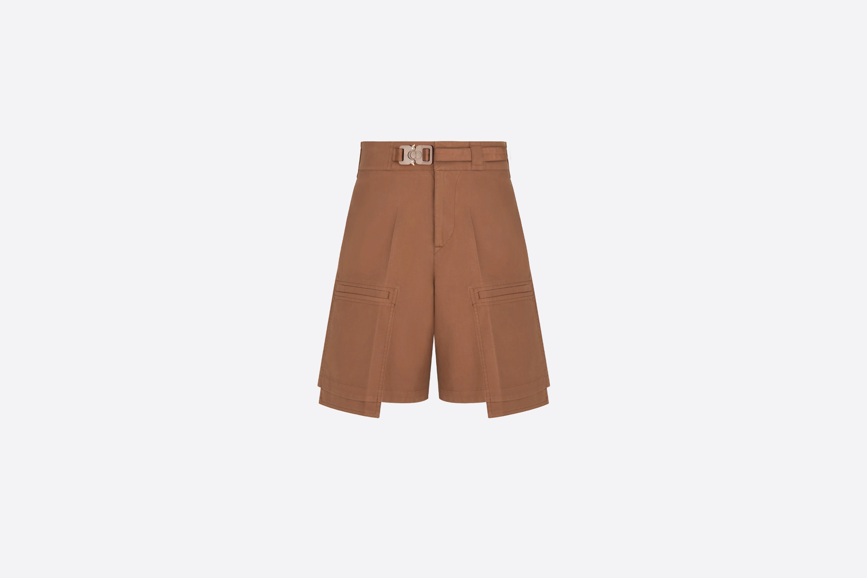 The Bermuda cargo shorts, crafted in coffee brown cotton faille, are enhanced by gusseted pockets on the front and back, while a metal 'CD' buckle belt highlights the waist with a utilitarian touch. Featuring a refined aesthetic, the Bermuda shorts can be worn with T-shirts and sweaters from the collection. - Brown metal 'CD' buckle belt - Zipped closure with engraved 'DIOR' signature on the pull and concealed button - Gusseted exposed pockets on the front - Side slit pockets - Gusseted flap pocket on the back - 100% cotton - Made in Italy Size & Fit - Mid-rise waist - Side length: 47 cm / 18.5 inches (size 48) - For more information, please review the size guide