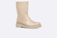 Revealed at the Winter 2023-2024 fashion show, the Dior Carlo boot combines timeless elegance and modernity. Crafted in cream crinkled calfskin, the design offers a modern square toe and a beveled heel with a metallic Dior signature. Featuring a leather and rubber sole with Blake construction and a Dior Oblique anti-slip insert, the shoe will lend a modern touch to any of the season's looks. - Cream crinkled calfskin - Beveled heel with metallic Dior signature - High-top - Pull-on style - Rubber and leather outsole - Dior Oblique rubber anti-slip insert - Calfskin lining - Blake construction - Dust bag included - Made in Italy - Runway Look 1 Size & Fit - The style fits true to size: we recommend ordering your normal shoe size - For more information, please review the size guide