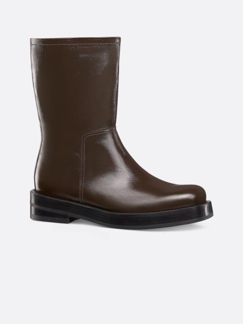 Revealed at the Winter 2023-2024 fashion show, the Dior Carlo boot combines timeless elegance and modernity. Crafted in brown crinkled calfskin, the design offers a modern square toe and a beveled heel with a metallic Dior signature. Featuring a leather and rubber sole with Blake construction and a Dior Oblique anti-slip insert, the shoe will lend a modern touch to any of the season's looks. - Brown crinkled calfskin - Beveled heel with metallic Dior signature - High-top - Pull-on style - Rubber and leather outsole - Dior Oblique rubber anti-slip insert - Calfskin lining - Blake construction - Dust bag included - Made in Italy - Runway Looks 2, 4, 8, 20, 21, 24, 41 and 56 Size & Fit - The style fits true to size: we recommend ordering your normal shoe size - For more information, please review the size guide