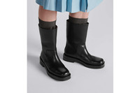 Revealed at the Winter 2023-2024 fashion show, the Dior Carlo boot combines timeless elegance and modernity. Crafted in black smooth calfskin, the design offers a modern square toe and a beveled heel with a metallic Dior signature. Featuring a leather and rubber sole with Blake construction and a Dior Oblique anti-slip insert, the shoe will lend a modern touch to any of the season's looks. - Black smooth calfskin - Beveled heel with metallic Dior signature - High-top - Pull-on style - Rubber and leather outsole - Dior Oblique rubber anti-slip insert - Calfskin lining - Blake construction - Dust bag included - Made in Italy - Runway Looks 7, 15, 34, 35, 40, 45 and 49 Size & Fit - The style fits true to size: we recommend ordering your normal shoe size - For more information, please review the size guide