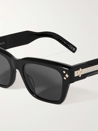 Dior Eyewear's sunglasses have sharp D-frames that'll add contrast to rounder faces. Made from acetate, they're inlaid with silver-tone metal that extends from the end pieces to the temples and finished with gold-tone studs. Keep them in the protective case when not in use. Size & Fit - Frame Width: 15cm / 5.9in - Frame Height: 5cm / 2in Details & Care - Black acetate, silver-tone metal, gold-tone metal - Come with a case - 100% UV protection