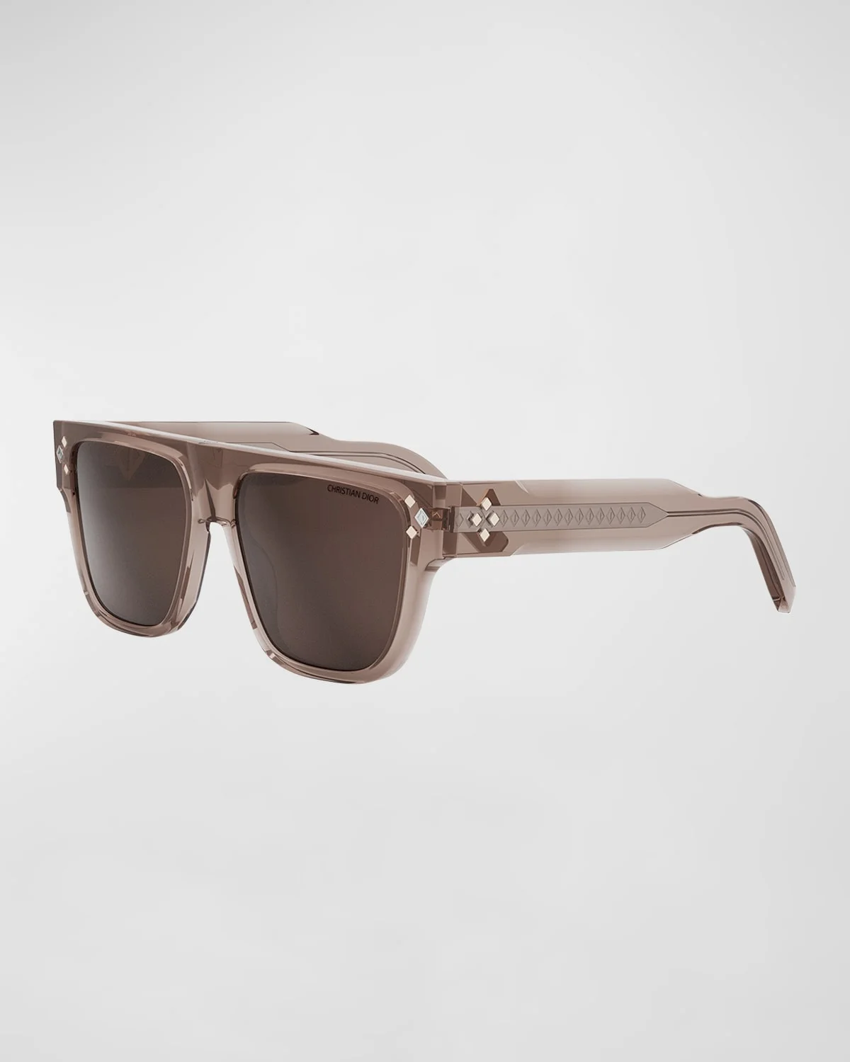 Dior "CD Diamond S6I" square sunglasses in acetate and nylon Lens/bridge/temple (in mm): 4623145 Solidcolor lenses Left lens logo script Saddle nose bridge CD diamond hardware on the front and temples Exposed metal corewire Thick, tapered arms Curved temple tips Acetate/nylon/polyamide Wipe clean 100% UVA/UVB protection Made in Italy