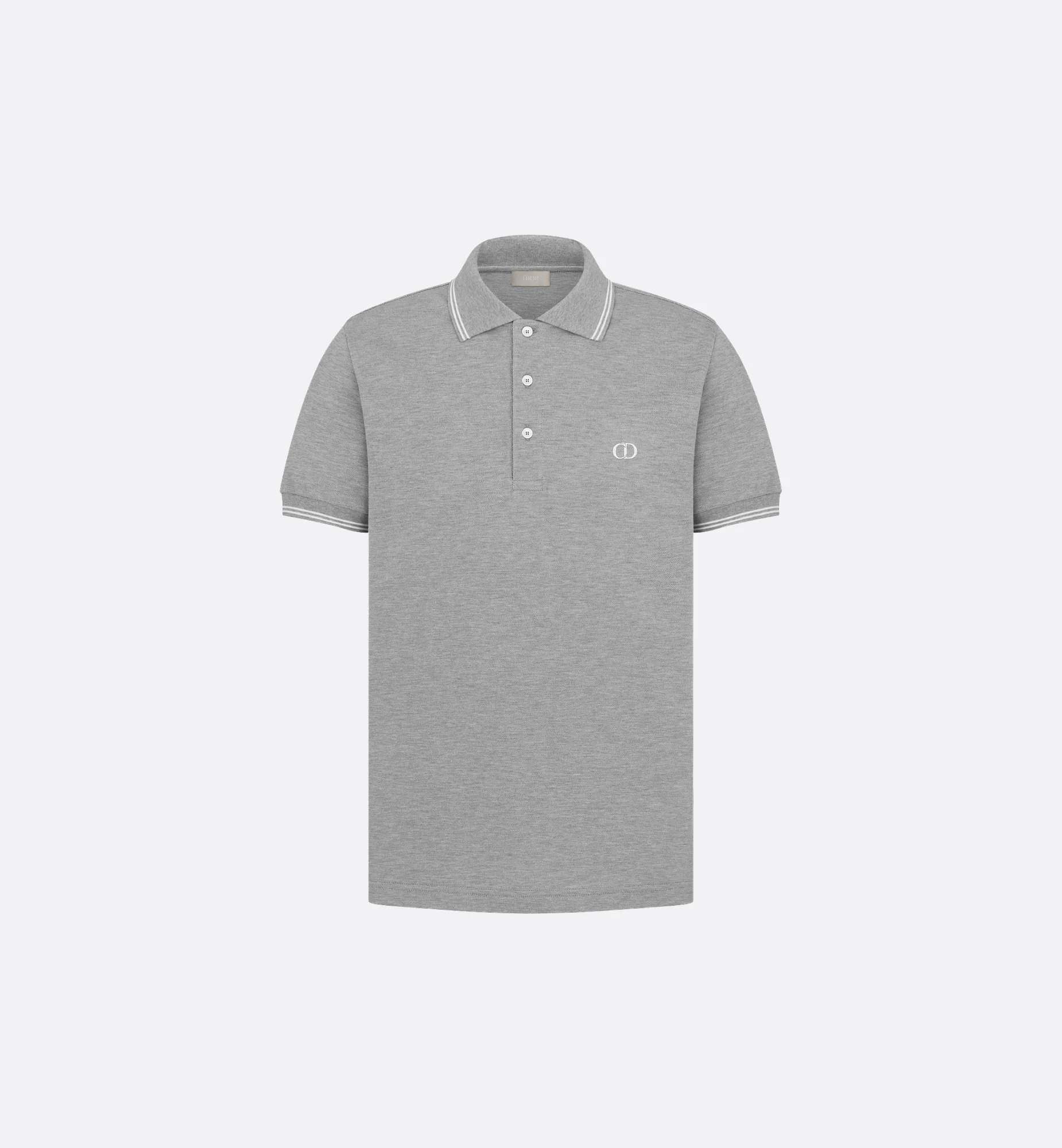 The CD Icon polo shirt is a laid-back and timeless style. Crafted in gray cotton pique, it showcases the CD Icon signature on the chest and contrasting bands on the collar and cuffs. The fitted polo shirt will pair well with tailored pants for an elegant athletic silhouette. - CD Icon signature embroidered on the chest - Polo collar - Ribbed collar and cuffs - 100% cotton - Made in Italy Size & Fit - Fitted silhouette - Garment length: 75 cm / 29.5 inches (size M) - The model measures 189 cm / 74.5 inches and the item shown is in size M (FR) - Using our personalized tool will provide you with the best size recommendation - For more information, please review the size guide