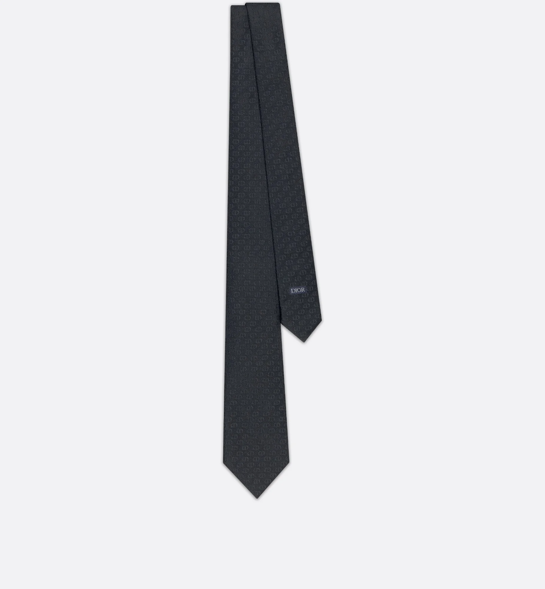 The black tie showcases the CD Icon motif in a tonal version. Crafted in silk, the refined style will elevate suits with a graphic touch. - Tonal allover CD Icon jacquard - Dior jacquard signature on the exterior of the tail - 100% silk - Made in Italy Size & Fit - Dimensions: 7 x 145 cm / 3 x 57 inches