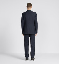 Tailoring is at the heart of House heritage and is the very essence of the Dior ateliers' savoir-faire. Celebrating this unique expertise, Kim Jones, Creative Director of Dior Men collections, reimagines the codes of elegance of the tuxedo. Crafted in textured virgin wool grain de poudre with traditional interfacing, the navy blue tuxedo can be worn during every season. The single-breasted jacket is characterized by its lapels and satin-covered buttons. It has a modern and sophisticated cut with elegant draping, while the mid-rise, regular-fit pants are enhanced by satin inserts on the sides. The tuxedo can be completed by a shirt and bow tie for a more elegant look on any special occasion. - Jacket: - Satin peak lapels - Traditional interfacing - Handstitched details - One-button single-breasted fastening with working buttonhole - Satin-covered buttons - Chest pocket and side flap pockets - 'CD' jacquard body lining and hallmark stripe-lined sleeves - Rear vent - Pants: - Satin side bands - Zipper and hook-and-bar fastening - Suit: - Made in Italy Size & Fit - Regular-fit jacket - Back length: 75 cm / 29.5 inches (size 48R) - Regular-fit pants - Leg opening: 19 cm / 7.5 inches (size 48R) - For more information, please review the size guide
