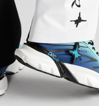 - Main composition: technical mesh and fabric - Technical fabric lining - Blade insert in shiny rubber with Dior signature - Dior signature on the sides and tongue - DIOR AND LEWIS HAMILTON signature charm at the eyelet - Low top - Black lace-up closure - Technical fabric support sock - Rear tab - DIOR AND LEWIS HAMILTON signature insole - Sculpted white rubber outsole with black edging - Welded construction - Dust bag included - Additional set of black laces provided - Made in Italy - Limited and numbered pair: 1947 pieces - Digital Certificate of Authenticity