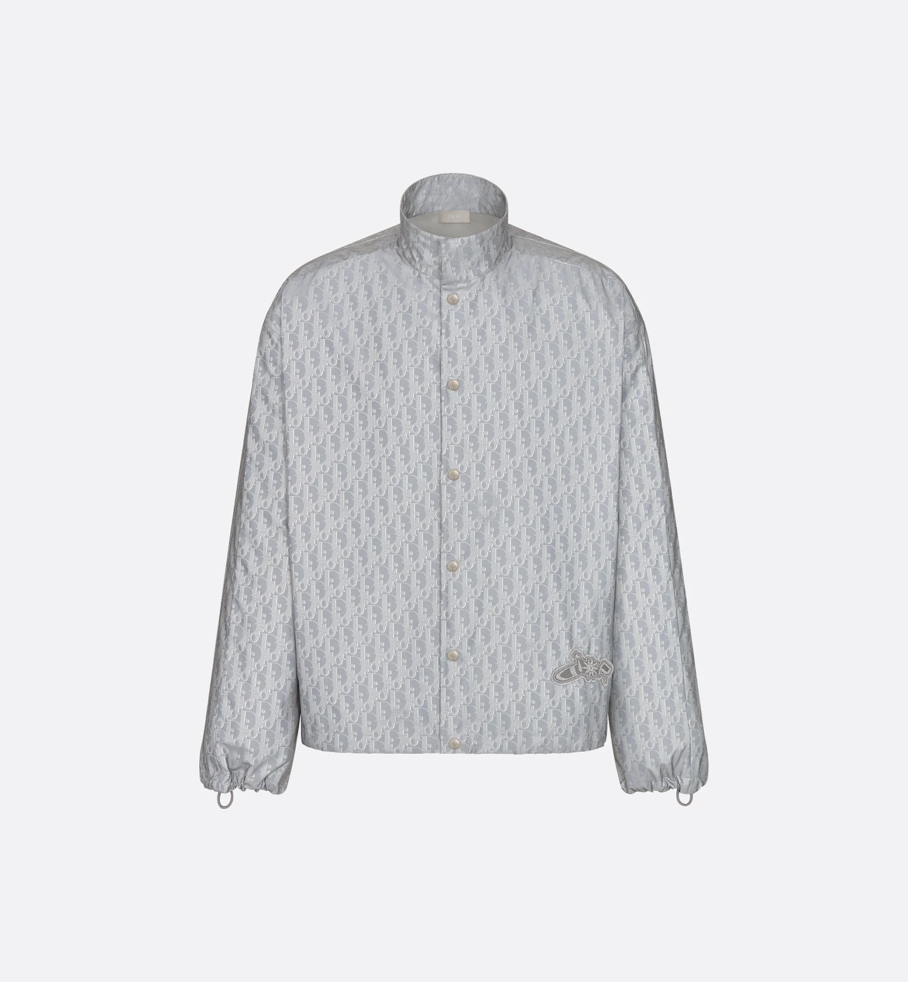 The gray shirt is part of the exclusive DIOR AND LEWIS HAMILTON capsule. Crafted in fully reflective nylon with the Dior Oblique motif, it features the collaboration's signature, with the House signature revisited in a graphic style. Contrasting trim on the sleeves, metal snaps and hem and cuff drawstrings complete the piece. The shirt can be worn with pants, Bermuda shorts or jeans to complete a modern look. - Allover Dior Oblique print - DIOR AND LEWIS HAMILTON embroidered patch - Metal snaps - Stand collar: 6 cm / 2.5 inches - Side slit pockets - Drawstring cuffs and hem - 100% polyester - Made in Italy Size & Fit - Oversized fit - The model measures 189 cm / 74.5 inches and the item shown is in size 39 (FR) - Using our personalized tool will provide you with the best size recommendation - For more information, please review the size guide