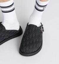 The Dior Aqua mule is a modern and timeless creation. The black Dior Oblique jacquard upper is enhanced by an adjustable strap with a ruthenium-finish brass Dior buckle. Featuring a notched sole in black leather, rubber and EVA, the mule can easily be worn with any casual outfit. - Main composition: cotton, technical fabric and calfskin - Calfskin lining - Adjustable strap with Dior-engraved ruthenium-finish brass buckle - Black calfskin insole - Black rubber and EVA notched outsole - Welded construction - Dust bag included - Made in Italy Size & Fit - The style fits true to size, we recommend ordering your normal shoe size - Weight: 530 g / 18.5 ounces - Weight details may vary depending on the product's material - Using our personalized tool will provide you with the best size recommendation - For more information, please review the size guide