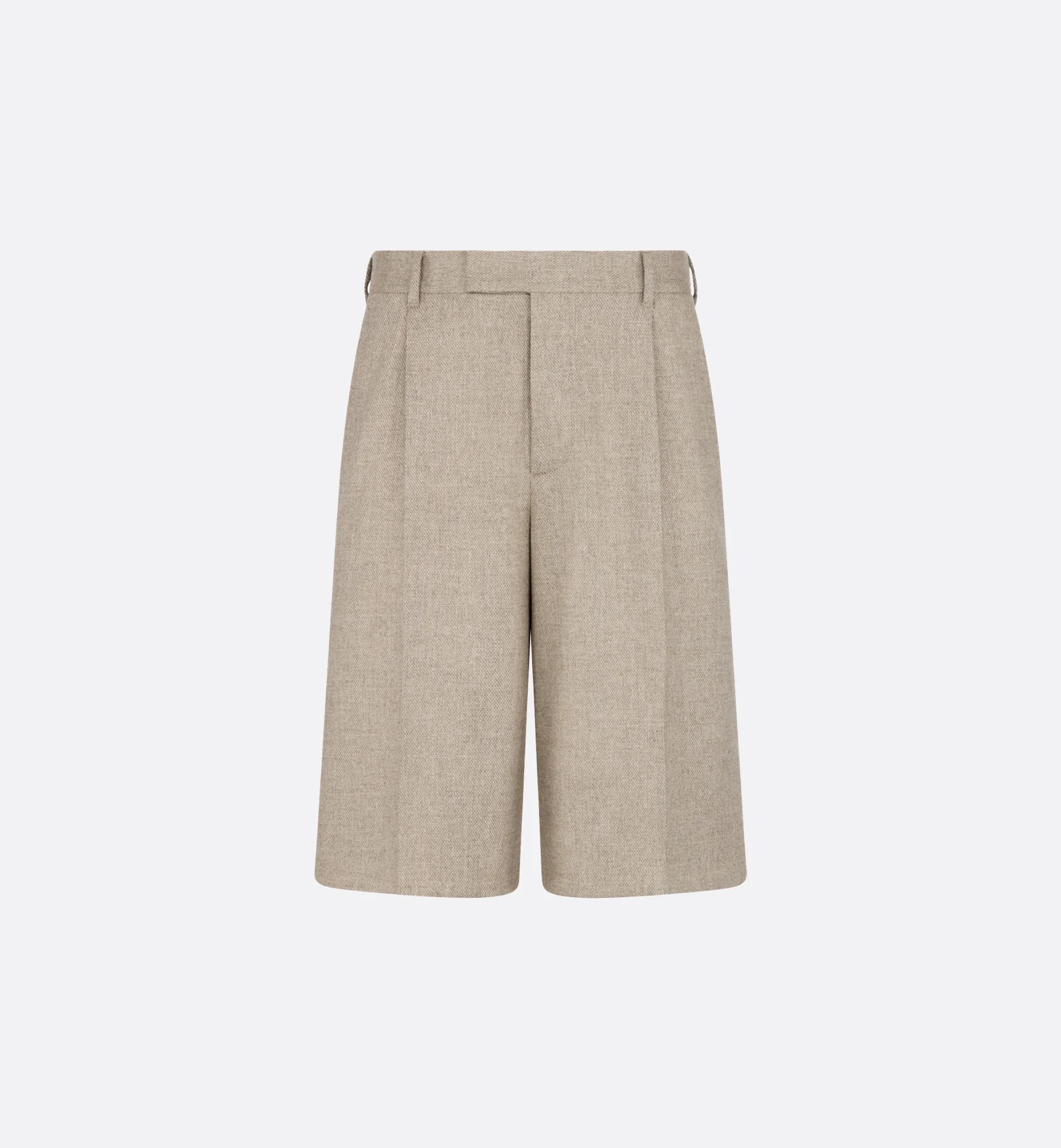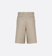 The Dior Icons line showcases House elements and savoir-faire in an elegantly understated style. Crafted in a beige virgin wool and cashmere blend, the Bermuda shorts feature a loose-fitting silhouette structured by front and rear creases, highlighted by double pockets on the sides. Modern yet timeless, the Bermuda shorts can be paired with a jacket or sweater to create a range of daily looks. - Creases - Belt loops - Zipper and hook-and-bar fastening - Metal button on the back - Double slit pockets on the sides and rear piped pockets - 69% virgin wool, 30% cashmere, 1% elastane - Made in Italy Size & Fit - Loose fit - Mid-rise waist - Side length: 52 cm / 20.5 inches (size 48) - Using our personalized tool will provide you with the best size recommendation - For more information, please review the size guide