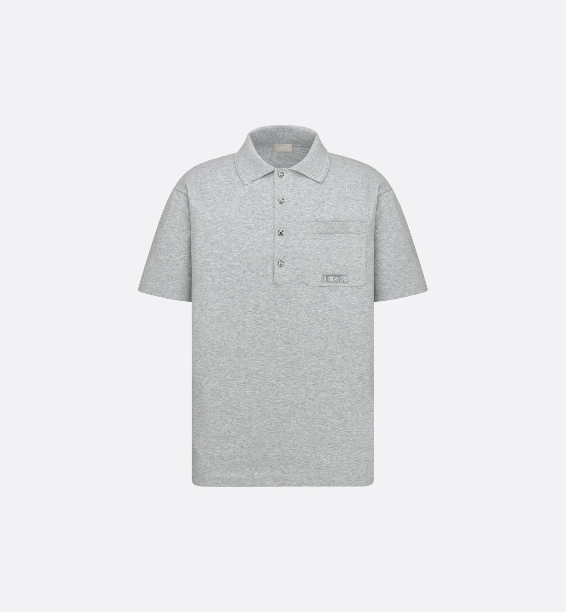 The Dior Icons polo shirt offers a couture variation of an iconic style. Crafted in a gray cotton and silk blend, it is embellished with a Dior embroidery on the chest pocket. The polo shirt's fluid silhouette will add an elegant touch to any casual outfit. - Dior embroidery on the chest pocket - Buttoned neckline - Mother-of-pearl buttons - Patch pocket on the chest - 85% cotton, 15% silk (18 gauge)* - Made in Italy Size & Fit - Relaxed fit - Size XXS: shoulder-to-shoulder width: 46 cm / 18 inches, chest size: 96 cm / 38 inches, outside and inside sleeve lengths: 19 and 12 cm / 7.5 and 4.5 inches, back and front lengths: 69 and 65 cm / 27 and 25.5 inches - Size XS: shoulder-to-shoulder width: 48 cm / 19 inches, chest size: 104 cm / 41 inches, outside and inside sleeve lengths: 20 and 12 cm / 8 and 4.5 inches, back and front lengths: 71 and 67 cm / 28 and 26.5 inches - Size S: shoulder-to-shoulder width: 50 cm / 19.5 inches, chest size: 108 cm / 42.5 inches, outside and inside sleeve lengths: 22 and 13 cm / 8.5 and 5 inches, back and front lengths: 73 and 68 cm / 28.5 and 27 inches - Size M: shoulder-to-shoulder width: 51 cm / 20 inches, chest size: 112 cm / 44 inches, outside and inside sleeve lengths: 22 and 13 cm / 8.5 and 5 inches, back and front lengths: 73 and 68 cm / 28.5 and 27 inches - Size L: shoulder-to-shoulder width: 53 cm / 21 inches, chest size: 116 cm / 45.5 inches, outside and inside sleeve lengths: 23 and 13 cm / 9 and 5 inches, back and front lengths: 74 and 67 cm / 29 and 26.5 inches - Size XL: shoulder-to-shoulder width: 55 cm / 21.5 inches, chest size: 122 cm / 48 inches, outside and inside sleeve lengths: 24 and 14 cm / 9.5 and 5.5 inches, back and front lengths: 75 and 69 cm / 29.5 and 27 inches - Size XXL: shoulder-to-shoulder width: 56 cm / 22 inches, chest size: 128 cm / 50.5 inches, outside and inside sleeve lengths: 26 and 14 cm / 10 and 5.5 inches, back and front lengths: 76.5 and 69.5 cm / 30 and 27.5 inches - Size 3XL: shoulder-to-shoulder width: 57 cm / 22.5 inches, chest size: 130 cm / 51 inches, outside and inside sleeve lengths: 26 and 14 cm / 10 and 5.5 inches, back and front lengths: 77 and 70 cm / 30.5 and 27.5 inches - Each measurement may have a normal variation of 2 cm / 0.75 inch - The model measures 187 cm / 73.5 inches and the item shown is in size M (FR) - Using our personalized tool will provide you with the best size recommendation - For more information, please review the size guide