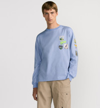 New for Spring 2026, the Dior Mountain long-sleeved T-shirt is adorned with multicolor patches imbued with an alpine spirit and Dior's couture codes inspired by House archives. Made in blue cotton jersey, it has a ribbed crew neck and cuffs. The T-shirt will pair with a puffer jacket from the line to complete the look. - Dior Mountain embroidered patches - Crew neck - Long sleeves - Ribbed cuffs - 100% cotton - Made in Italy Size & Fit - Relaxed fit - Garment length: 71 cm / 28 inches (size M) - This item is designed for a slightly loose fit – we recommend ordering your regular size - Using our personalized tool will provide you with the best size recommendation - For more information, please review the size guide