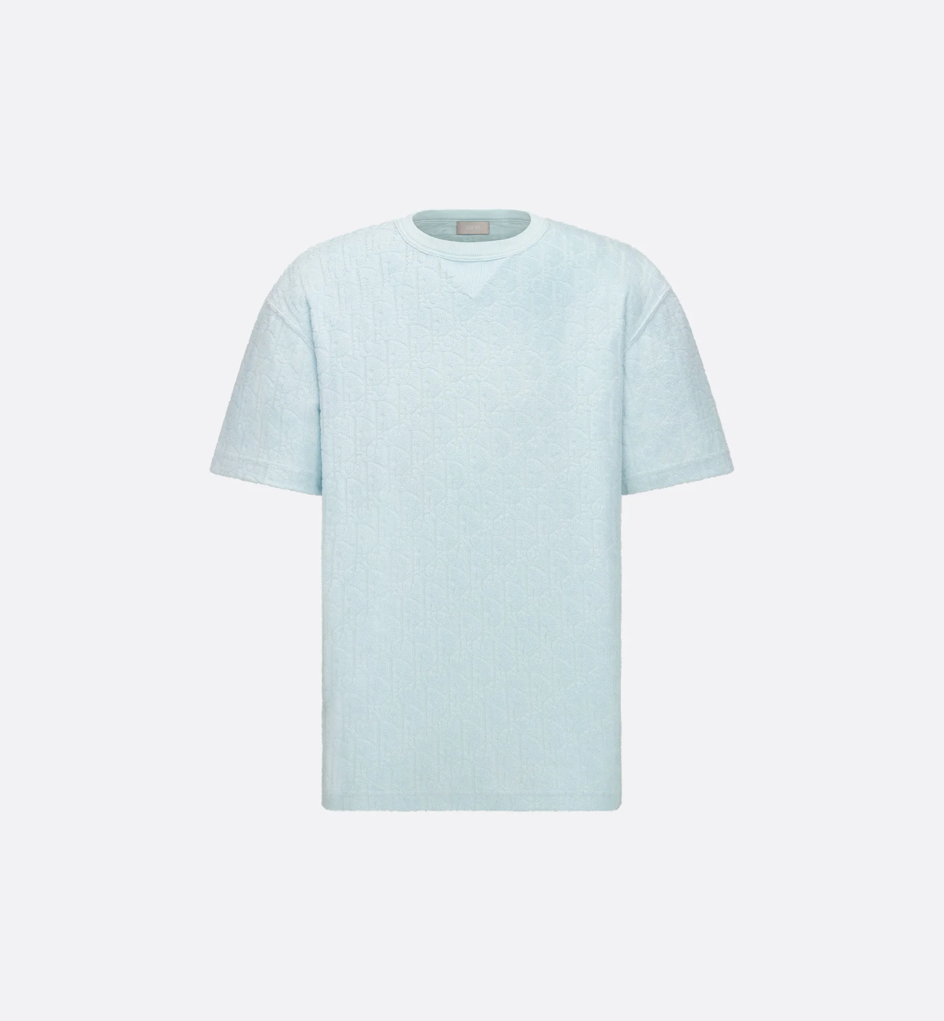 The blue terry cotton T-shirt pays tribute to the hallmark Dior Oblique motif with a tonal jacquard. The ribbed crew neck has a V shape for a casual effect. The relaxed-fit T-shirt may be paired with jeans or track pants for an elevated look. - Tonal allover Dior Oblique jacquard motif - Ribbed crew neck with V - 100% cotton - Made in Italy Size & Fit - Relaxed fit - The style fits large, we recommend ordering a size smaller than your normal size - Size XXS: shoulder-to-shoulder width: 48 cm / 19 inches, chest size: 100 cm / 39.5 inches, outside and inside sleeve lengths: 20 and 12 cm / 8 and 4.5 inches, garment length: 69 cm / 27 inches - Size XS: shoulder-to-shoulder width: 49 cm / 19.5 inches, chest size: 104 cm / 41 inches, outside and inside sleeve lengths: 21 and 12 cm / 8.5 and 4.5 inches, garment length: 71 cm / 28 inches - Size S: shoulder-to-shoulder width: 49 cm / 19.5 inches, chest size: 108 cm / 42.5 inches, outside and inside sleeve lengths: 22 and 12.5 cm / 8.5 and 5 inches, garment length: 71 cm / 28 inches - Size M: shoulder-to-shoulder width: 51 cm / 20 inches, chest size: 112 cm / 44 inches, outside and inside sleeve lengths: 22 and 12.5 cm / 8.5 and 5 inches, garment length: 72 cm / 28.5 inches - Size L: shoulder-to-shoulder width: 52 cm / 20.5 inches, chest size: 118 cm / 46.5 inches, outside and inside sleeve lengths: 23 and 13 cm / 9 and 5 inches, garment length: 74 cm / 29 inches - Size XL: shoulder-to-shoulder width: 54 cm / 21.5 inches, chest size: 122 cm / 48 inches, outside and inside sleeve lengths: 23 and 13 cm / 9 and 5 inches, garment length: 74 cm / 29 inches - Size XXL: shoulder-to-shoulder width: 54 cm / 21.5 inches, chest size: 126 cm / 49.5 inches, outside and inside sleeve lengths: 25 and 13 cm / 10 and 5 inches, garment length: 74 cm / 29 inches - Size 3XL: shoulder-to-shoulder width: 56 cm / 22 inches, chest size: 130 cm / 51 inches, outside and inside sleeve lengths: 24 and 13 cm / 9.5 and 5 inches, garment length: 74 cm / 29 inches - Each measurement may have a normal variation of 2 cm / 0.75 inch - The model measures 189 cm / 74.5 inches and the item shown is in size M (FR) - Using our personalized tool will provide you with the best size recommendation - For more information, please review the size guide