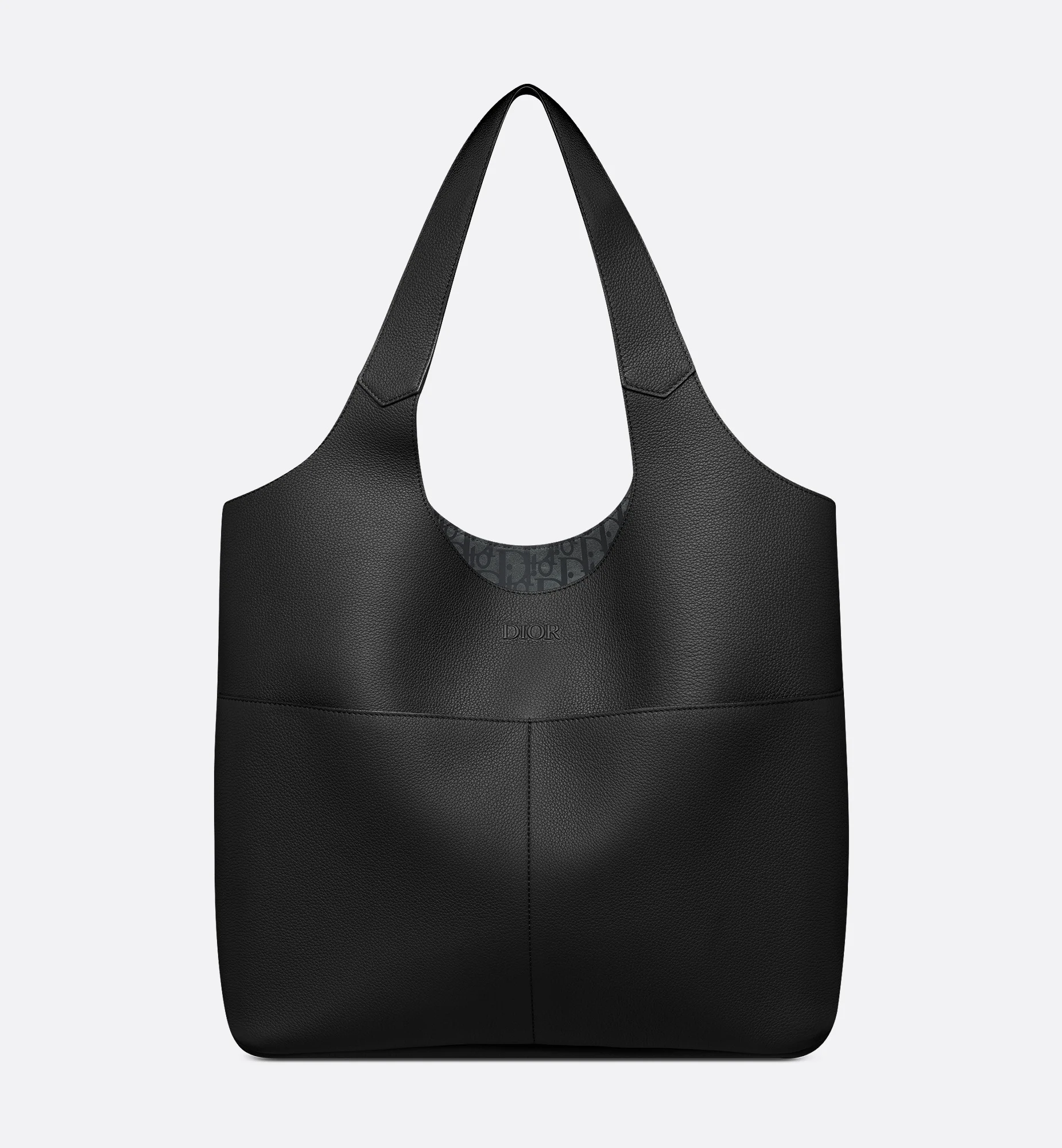 New for Fall 2025, the Dior Prive tote bag is refined and timeless. Made in black Dior Icons calfskin, it is enhanced by the Dior signature delicately debossed on the front. It has two slip pockets on the front, as well as a Dior Oblique baby suede interior with a spacious compartment and removable zip pouch. The tonal leather top handles allow the bag to be worn over the shoulder. - Main composition: calfskin - Cowhide suede lining - Open main compartment - Removable interior zip pouch - Two front slip pockets - Leather top handles - Debossed Dior signature on the front - Embossed Dior signature on the interior - Dust bag included - Made in Italy Size & Fit - Dimensions: 39.5 x 35 x 15 cm / 15.5 x 14 x 6 inches (Length x Height x Width) - The main compartment's size is suitable for a 15-inch laptop computer, A4 documents and a tablet - Top handle length: 48 cm / 19 inches - Top handle drop length: 29 cm / 11.5 inches - Weight: 1.1 kg / 2.5 pounds - Size and weight details may vary depending on the product's material