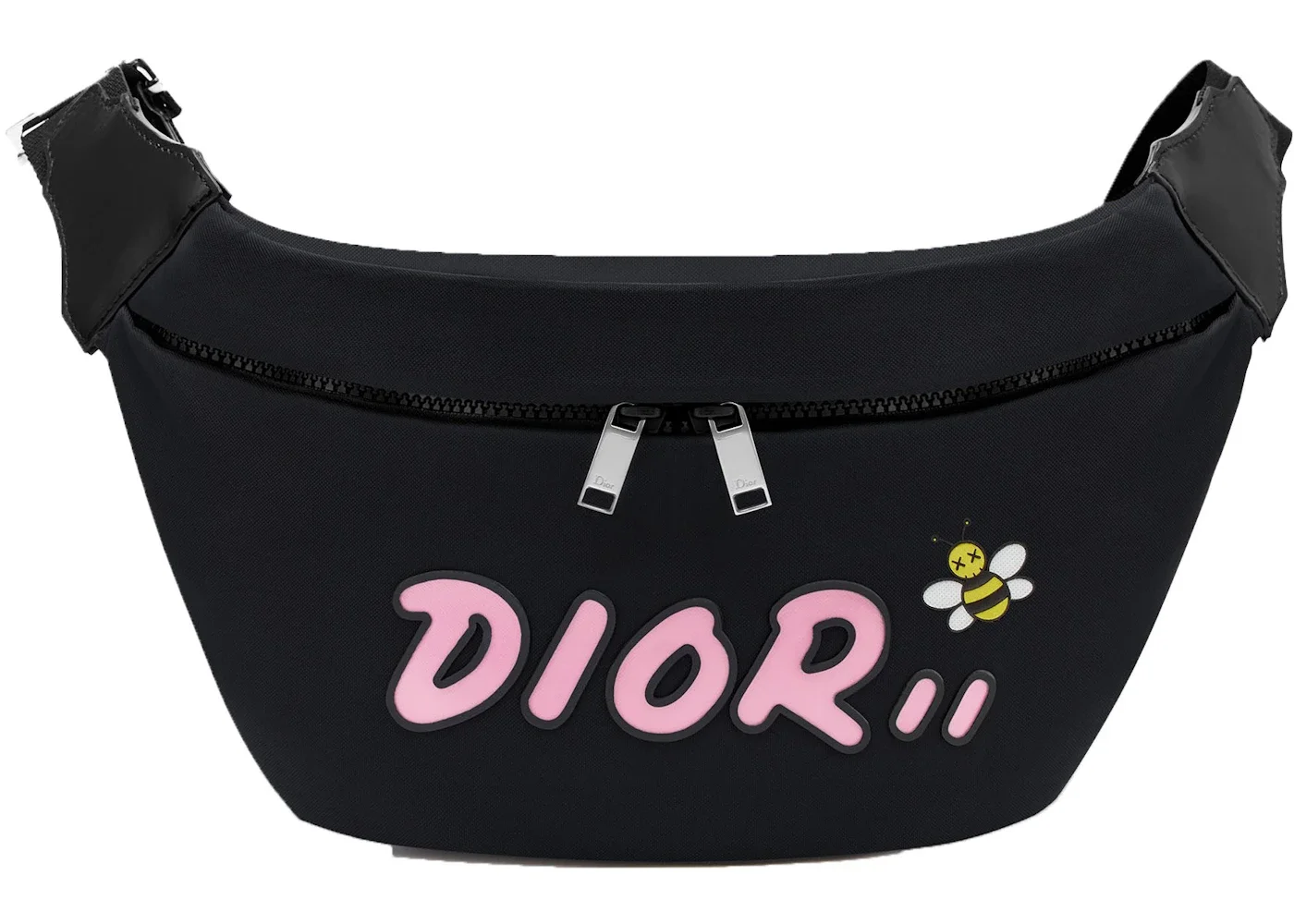 Dior x Kim Jones: What’s the first thing Kim Jones does after being appointed Dior's Homme director? He teams up with legendary artist, Brian "KAWS" Donnelly. The Brooklyn artist takes on Dior’s logo and bee design, giving a new interpretation of the brand. Even though Jones’ capsule collection holds a modern theme, there is no lack in reference and respect to the history of Dior's aesthetic. So if you are a fan of both luxury and art, StockX has got you covered!Please Note: This item comes with a dust bag, the box is not required. - Dimensions 9H 14W 3D - Material Nylon - Retail Price 870 - Color Black - Hardware Silver-tone - Style 1KWPO100YLE_H10E - Base Model Belt Bag - Color Generic Black - Depth 3 - Exterior Variant Nylon - Featured false - Height 9 - Interior Color Black - Pattern Variant With Pink Dior Logo - Styles Waist Bag - Width 14