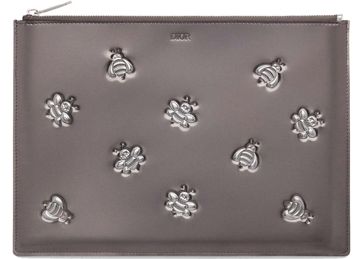 Dior x Kaws Pouch Calfskin Bee Print Silver
