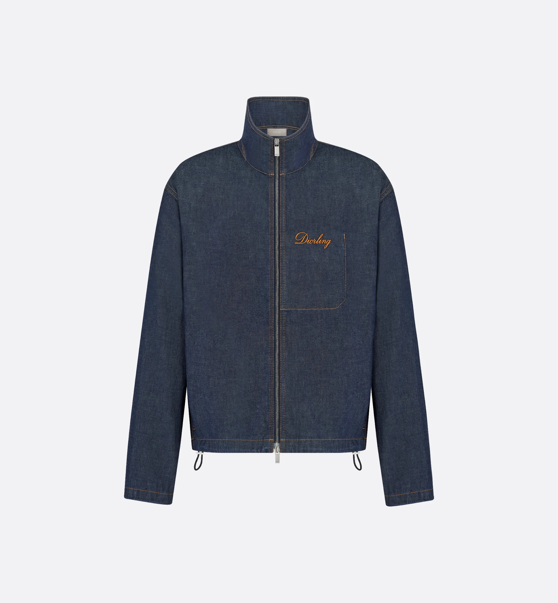 New for Winter 2025, the blouson jacket celebrates Dior heritage with the Diorling signature, inspired by House archives. Made in a new navy blue cotton denim that is both lightweight and soft, it is ideal for the season. The blouson jacket can be styled with jeans from the same line to complete the look. - Diorling embroidery - Two-way zip fastening with Dior signature zipper pulls - Stand collar - Chest patch pocket - Drawstring cuffs and hem - 100% cotton - Made in Italy Size & Fit - Comfortable fit - Garment length: 64 cm / 25 inches (size 39) - The model measures 189 cm / 74.5 inches and the item shown is in size 39 (FR) - Using our personalized tool will provide you with the best size recommendation - For more information, please review the size guide