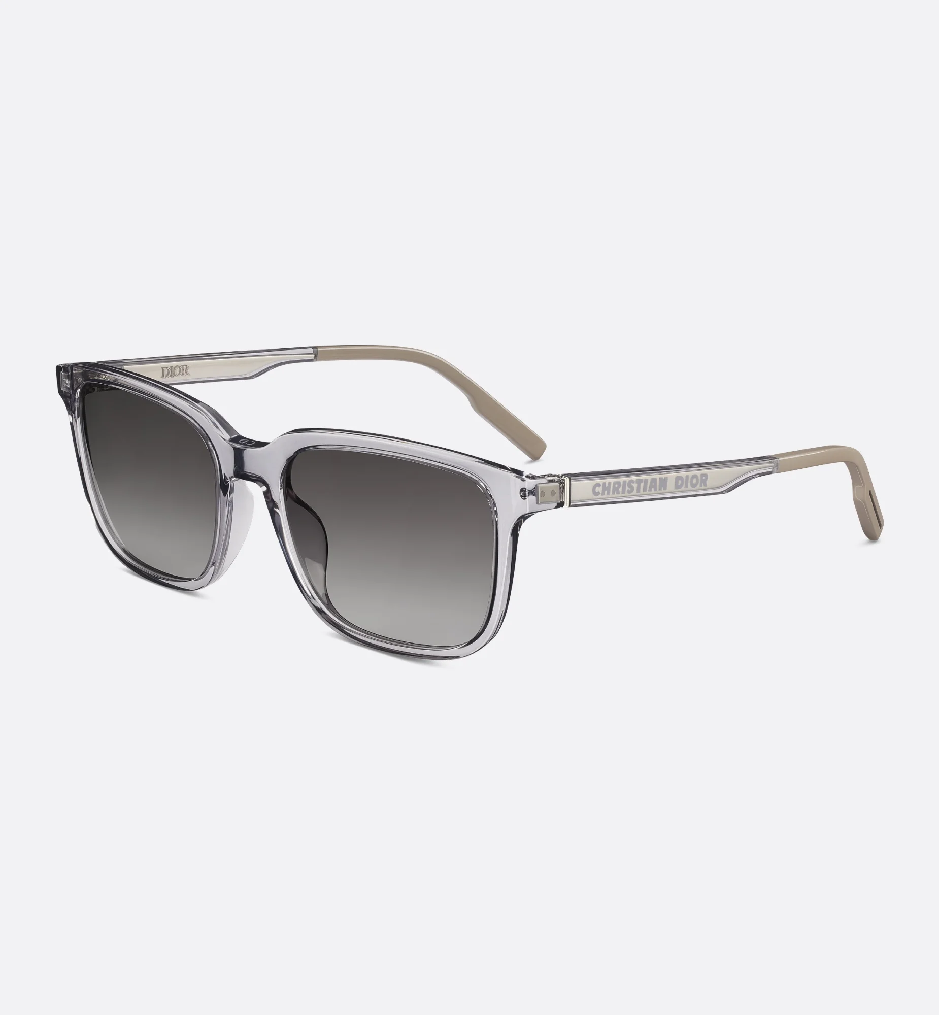 The DiorTag SU sunglasses feature a rectangular shape for a resolutely urban look. The thin transparent gray acetate frame is embellished with crystal-tone and silver-finish metal temples, showcasing a subtly contrasting Christian Dior signature. The gradient gray lenses and khaki temple tips lend a touch of color to the casual style. - Transparent gray acetate frame - Gradient gray lenses - Crystal temples with white Christian Dior signature - Khaki temple tips - 100% UVA/UVB protection - Filter category: 2 - Suitable for prescription lenses - Made in Italy Size & Fit - The nose pads are specially designed to adapt to all face shapes - Lenses: 54 mm / 2 inches, Bridge: 19 mm / 1 inch, Temples: 145 mm / 5.5 inches