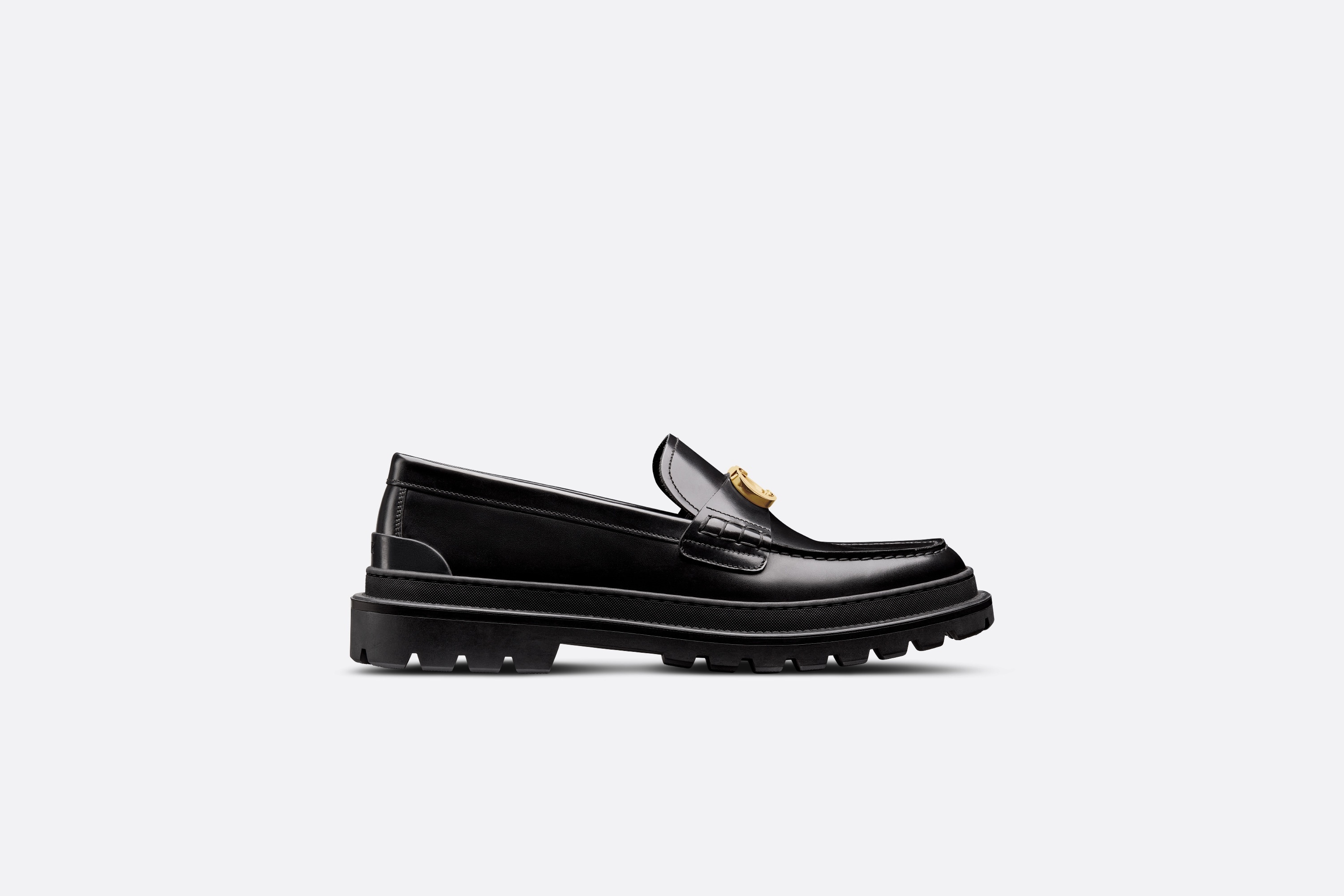 The Dior Explorer loafer offers a modern variation of the dress shoe. Crafted in black polished calfskin, the style is enhanced with a gold-finish brass CD Icon buckle on the upper and a tonal notched rubber sole, further enhanced with an engraved Dior signature on the back. The shoe may be worn with any seasonal attire. - Black polished calfskin - Gold-finish brass CD Icon buckle - Dior signature at the back - Low-top - Pull-on style - Notched rubber sole - Welded, side-sewn construction - Dust bag included - Made in Italy Size & Fit - The style fits true to size: we recommend ordering your normal shoe size - For more information, please review the size guide