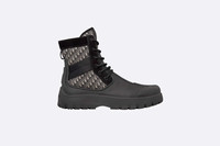 New this season, the Dior Garden ankle boot revisits the technical boot with a couture version. The black rubber upper is enhanced by inserts and a beige and black Dior Oblique jacquard tongue. The tonal thick notched rubber sole with Dior signature completes the design with a bold look. - Beige and black Dior Oblique jacquard and black rubber - Engraved Dior signature on the sole - High-top - Lace-up closure - Notched rubber outsole - Welded construction - Dust bag included - Made in Italy Size & Fit - The style fits true to size: we recommend ordering your normal shoe size - For more information, please review the size guide