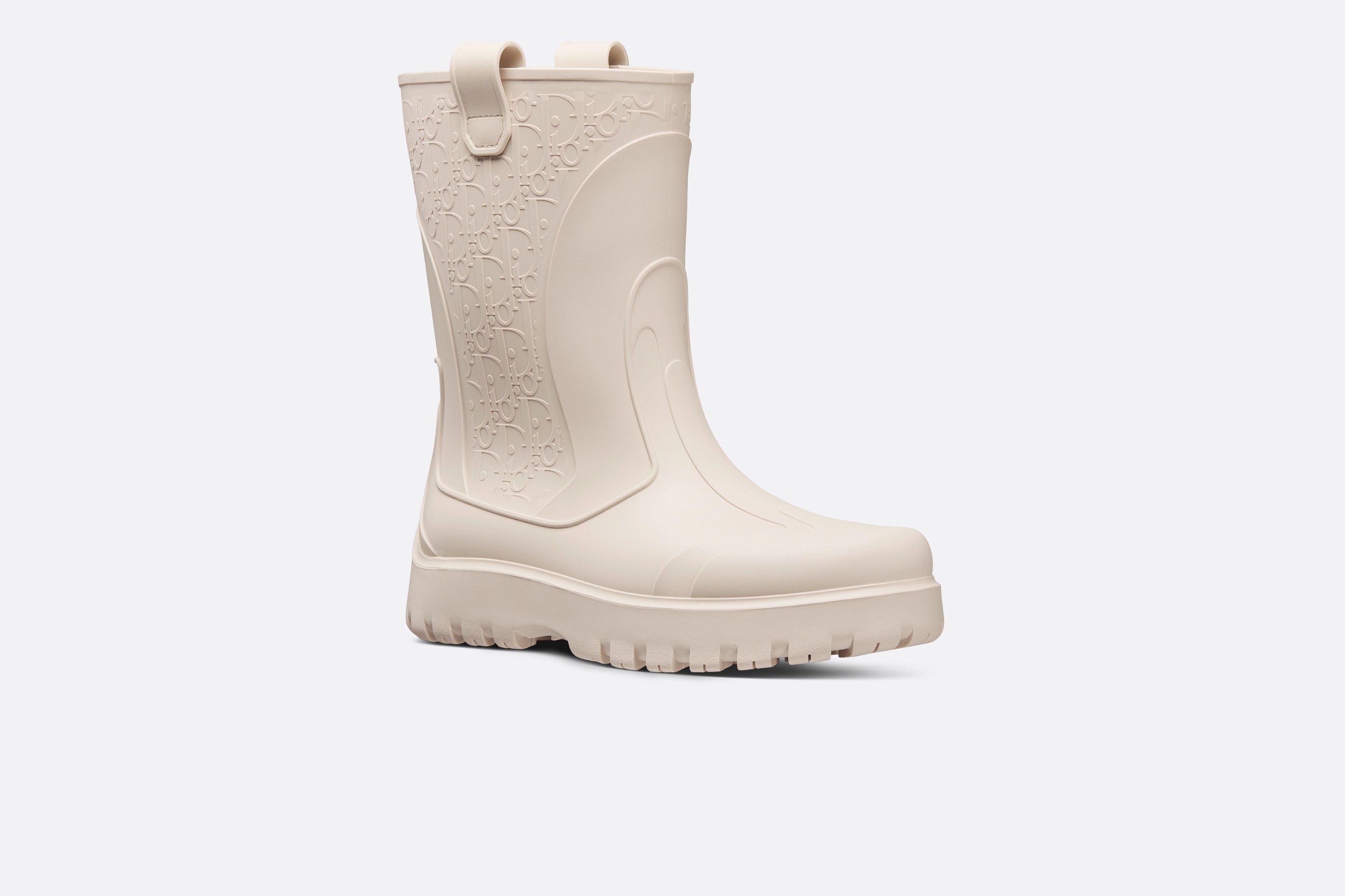 Winter 2023-2024's new Dior Garden rain boot reimagines the technical rain boot through the House's codes of couture. The waterproof upper in beige rubber is enhanced by the iconic embossed Dior Oblique motif. Featuring a large silhouette and side tabs allowing it to slip on easily, the boot lends a bold look to any outfit. - Beige rubber with Dior Oblique motif - Dior signature engraved on the heel - High-top - Pull-on style - Side tongues - Tonal notched rubber outsole - Waterproof lining in nylon - Welded construction - Dust bag included - Made in Italy Size & Fit - The style fits true to size: we recommend ordering your normal shoe size - For more information, please review the size guide