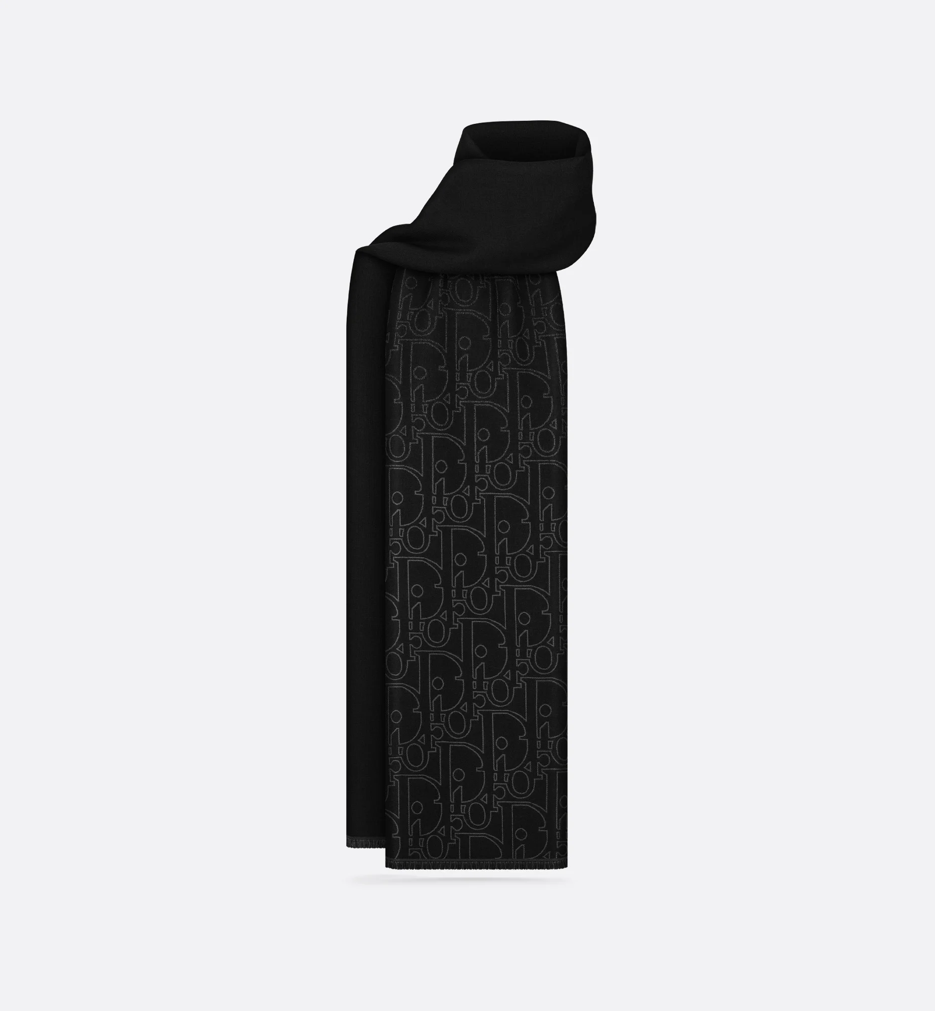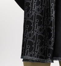 New for Winter 2025, the black and white scarf is a modern and elegant piece. Crafted in wool and silk jacquard, it features the Dior Gravity motif enhanced by a gradient effect. The scarf has fringed edges and can be worn in a classic manner, wrapped around the neck, or simply draped over the shoulders. - Black and white gradient Dior Gravity jacquard - Fringed edges - 70% wool, 30% silk - Made in Italy Size & Fit - Dimensions: 70 x 200 cm / 27.5 x 78.5 inches