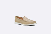 The Dior Granville loafer offers a relaxed version of a dress shoe. Crafted in luxurious and ultra-soft beige suede, the style is adorned with a beige Dior Oblique jacquard insert on the vamp. It is completed by a cream lightweight rubber sole and is enhanced by the Dior Oblique motif engraved on the outsole and the Dior signature engraved on the rear. The shoe will lend an elegant touch to casual looks. - Beige Dior Oblique suede and jacquard - Dior signature at the back - Low-top - Pull-on style - Cream rubber outsole engraved with the Dior Oblique motif - Welded construction - Dust bag included - Made in Italy Size & Fit - The style fits large, we recommend ordering half a size smaller - Weight: approximately 358 g / 12.5 ounces - For more information, please review the size guide