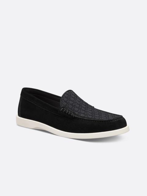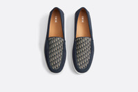 The Dior Granville loafer offers a relaxed version of a dress shoe. Crafted in luxurious and ultra-soft navy blue suede, the style is adorned with a beige and black Dior Oblique jacquard insert on the vamp. It is completed by a lightweight white rubber sole and enhanced by the engraved Dior Oblique motif on the outsole and the Dior signature on the rear. The shoe will lend an elegant touch to casual looks. - Navy blue suede with beige and black Dior Oblique jacquard - Dior signature at the back - Low top - Pull-on style - White rubber outsole engraved with the Dior Oblique motif - Welded construction - Dust bag included - Made in Italy Size & Fit - The style fits large, we recommend ordering half a size smaller - Weight: approximately 344 g / 12 ounces - For more information, please review the size guide