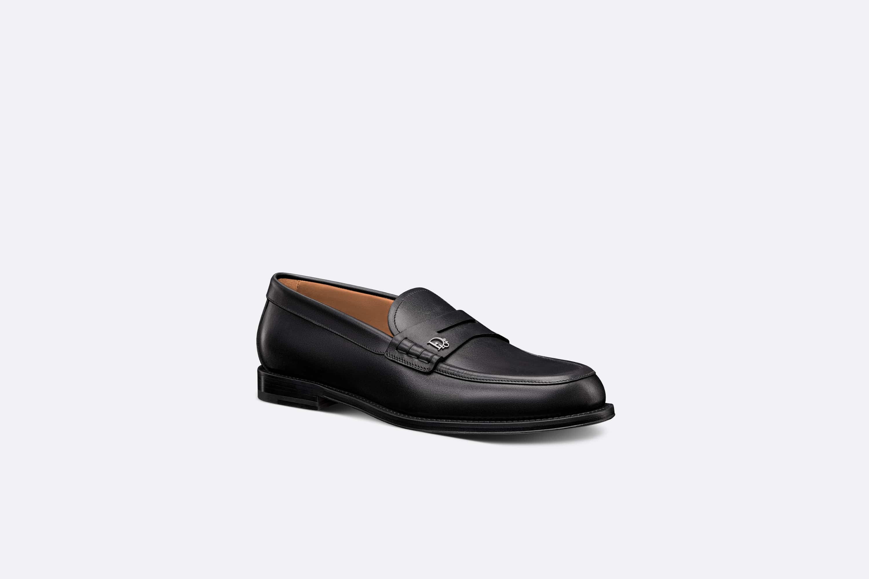 The Dior Granville loafer presents a refined version of an urban shoe. Crafted in black smooth calfskin, the style is embellished with a Dior Oblique signature in palladium-finish brass on the upper. The creation is completed by a tonal leather sole and an engraved Dior signature on the back. The shoe can be worn with any seasonal attire for an elegant and timeless look. - Black smooth calfskin - Palladium-finish brass Dior Oblique signature - Dior signature at the back - Low-top - Pull-on style - Leather outsole - Blake construction - Dust bag included - Made in Italy Size & Fit - The style fits true to size: we recommend ordering your normal shoe size - For more information, please review the size guide