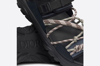 The new Dior H-Town sandal is a hybrid creation offering a new take on the trekking universe with the House's couture spirit. Crafted in black and gray technical fabric and brown nubuck calfskin, it is enhanced by a set of nautical-inspired utility cords on the front, accentuating its technical appeal. An ultra-lightweight rubber outsole, adjustable bands and an italicized 'DIOR' signature complete the style. The sandal can be worn with Bermuda shorts or jeans. - Black and gray technical fabric with brown nubuck calfskin - 'DIOR' signature on the side - Adjustable bands - Nautical-inspired utility cords on front - Smooth calfskin insole - Rubber outsole - Welded construction - Dust bag included - Made in Italy Size & Fit - The style fits true to size: we recommend ordering your normal shoe size - For more information, please review the size guide