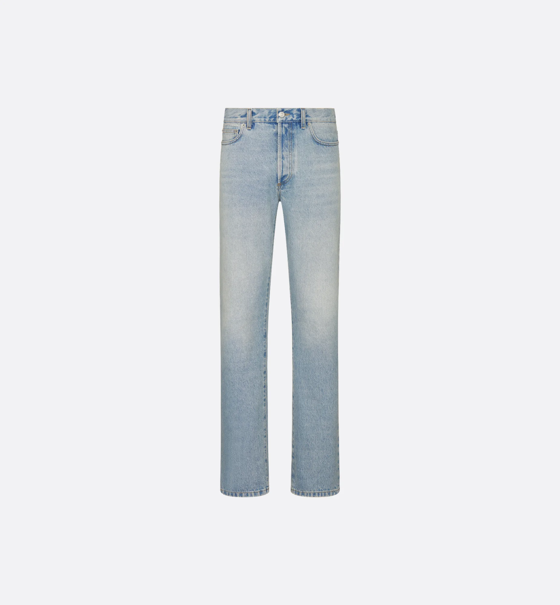 The long, regular-fit jeans honor aughts-inspired House heritage. Crafted in light blue cotton twill, they feature a five-pocket silhouette embellished with hallmark Dior topstitching on the rear pockets and a Dior-embossed leather tag. Combining a vintage effect and a modern aesthetic, the jeans can be worn with one of the season's overshirts to complete the look. To extend the garment's life, follow the care instructions on the tag. So as to preserve their quality, wash the jeans inside out, as little as possible and dry flat in open air. Your denim will lighten over time and become a unique piece. Care: Do not wash the garment above 30°C (86°F), bleach it, iron it above 100°C (212°F) or tumble dry. Dry clean normally. - Dior-embossed leather tag on the back - Belt loops - Five-pocket style - Hallmark Dior topstitching on rear pockets - Laser-faded - Vintage effect - 100% cotton - Heavy-weight denim – 14.5 oz - Made in Italy Size & Fit - Long, regular fit - Mid-rise waist - Leg opening: 20 cm / 8 inches (size 31) - Dior's regular jeans measure 110 cm / 43.5 inches in the leg (size 31) - The model measures 187 cm / 73.5 inches and the item shown is in size 31 - For more information, please review the size guide