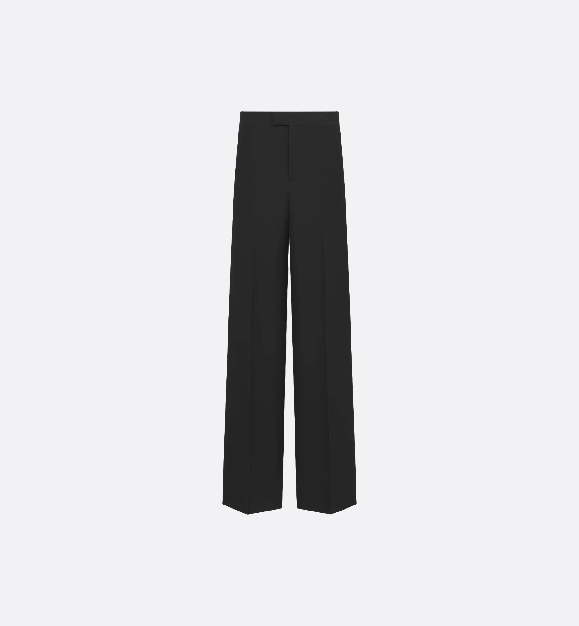 Tailoring is quintessential Dior atelier savoir-faire and lies at the heart of House heritage. Debuted at the Winter 2025-2026 Men's Fashion Show, the pants are crafted in black wool. The loose-fit silhouette is enhanced by creases in the front and a V-shaped detail in the back. A wardrobe essential, the pants can be paired with a shirt to complete a timeless look. - Creases - V detail in the back - Zip and hook closure - Side slit pockets and rear piped pockets - 100% wool and lining: 100% viscose - Made in Italy Size & Fit - Loose fit - Mid-rise waist - Leg opening: 27 cm / 10.5 inches (size 48) - The model measures 187 cm / 73.5 inches and the item shown is in size 48 (FR) - Using our personalized tool will provide you with the best size recommendation - For more information, please review the size guide