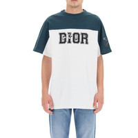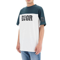 Men's DIOR Logo Printing Colorblock Round Neck Short Sleeve Green T-Shirt 193J646A0554-680
