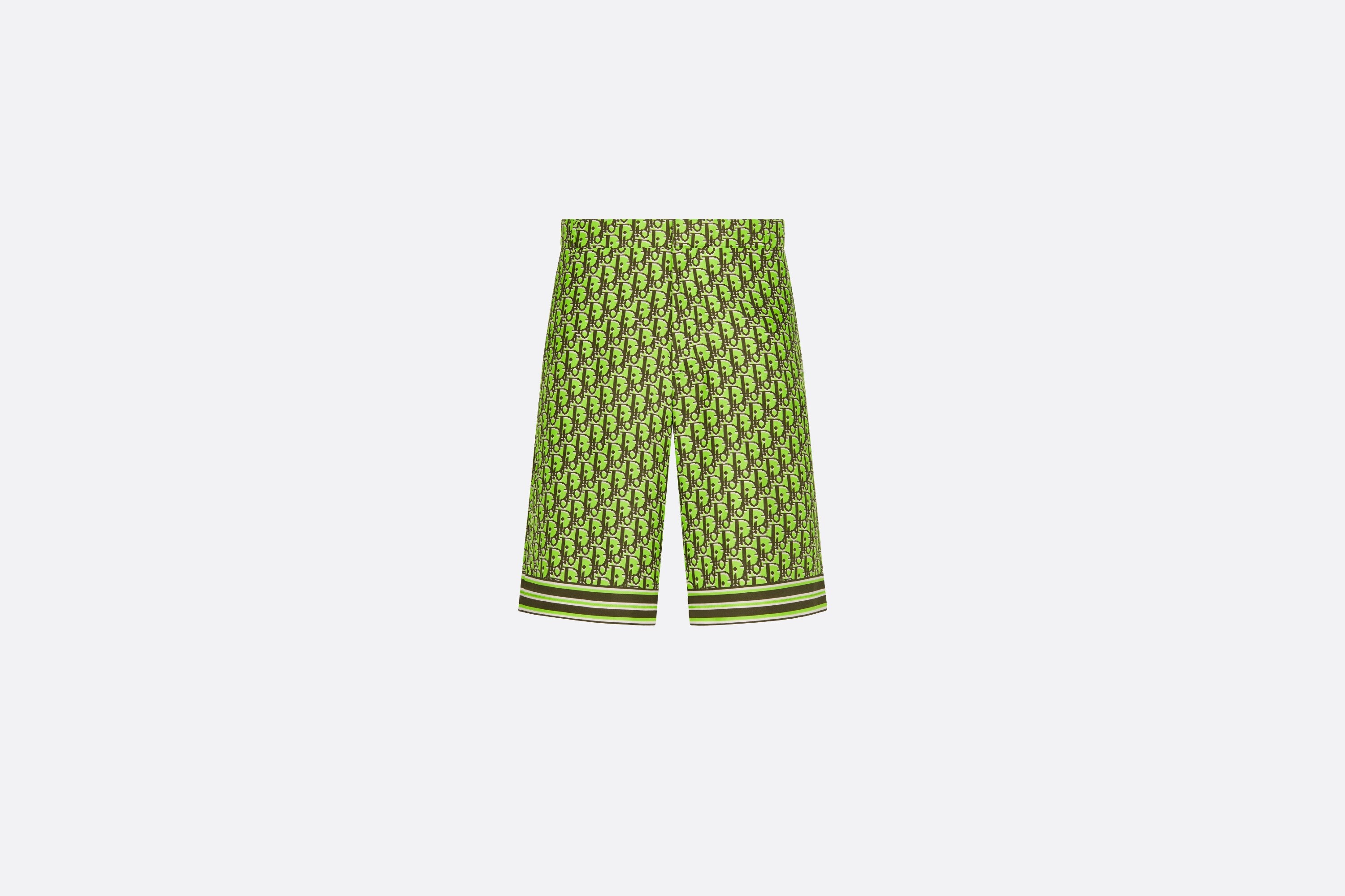 The fluorescent green and khaki Bermuda shorts highlight the Dior Oblique Pixel pattern that reimagines the House's signature motif. Crafted in silk twill, they have a striped hem, side welt pockets and a rear patch pocket. The style, with its relaxed silhouette and mid-rise waist can be paired with the matching Hawaiian shirt. - Fluorescent green and khaki all-over Dior Oblique print - Concealed zip and buttons - 'DIOR' signature horn buttons - Side slit pockets and rear patch pocket - 100% silk - Made in Italy Size & Fit - Mid-rise waist - Side length: 51 cm / 20 inches (size 48) - For more information, please review the size guide