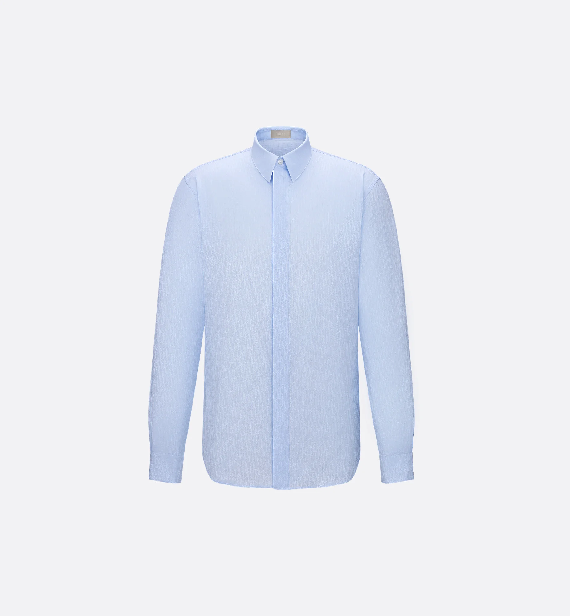 Tailoring is at the heart of House heritage and is the very essence of the Dior ateliers' savoir-faire. Celebrating this unique expertise, Kim Jones, Creative Director of Dior Men, reimagines the codes of elegance of an iconic Dior silhouette: the classic shirt. Crafted in soft and breathable blue cotton jacquard, it is further embellished with the hallmark all-over tonal Dior Oblique jacquard with a matte finish that lends its texture. An essential men's wardrobe item, it can be paired with a suit to complete a modern, formal Dior look. - All-over tonal Dior Oblique jacquard - Collar: 6.5 cm / 2.5 inches - Concealed button placket - Mother-of-pearl buttons with Dior signature - Shirttail hem - 100% cotton - Made in Italy Size & Fit - Classic fit - Back length: 80 cm / 31.5 inches (size 39) - For more information, please review the size guide