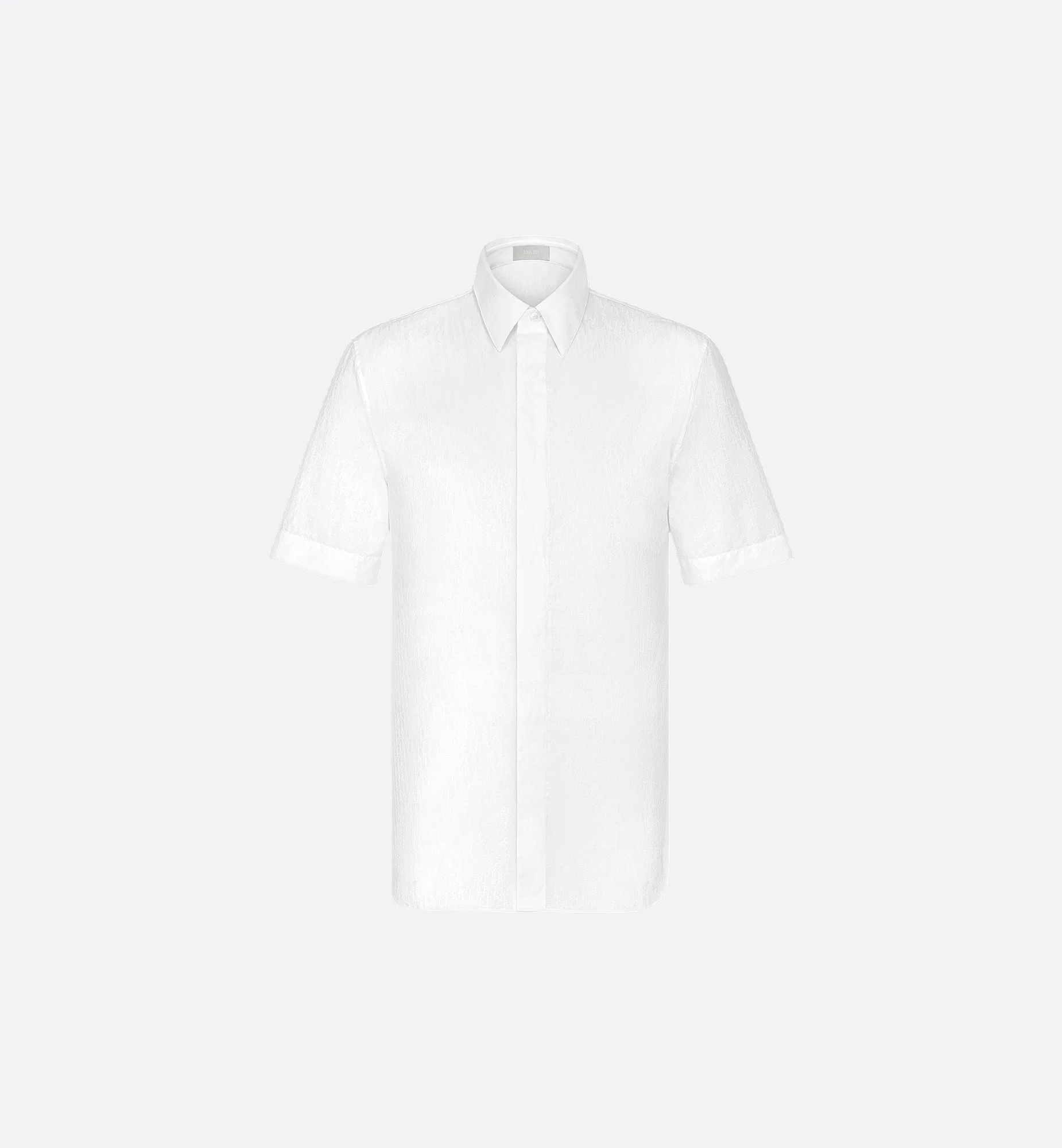 Tailoring is quintessential Dior atelier savoir-faire and lies at the heart of House heritage. Celebrating this unique expertise, Kim Jones, Creative Director of Dior Men, reimagines the codes of elegance of an iconic Dior silhouette: the short-sleeved shirt. Crafted in soft and breathable white cotton jacquard, it is embellished with a tonal allover hallmark Dior Oblique motif lending it texture. A wardrobe essential, it can be coordinated with a suit to complete a modern and formal Dior look. - Tonal allover Dior Oblique jacquard - Collar: 6.5 cm / 2.5 inches - Short sleeves - Concealed button placket - Mother-of-pearl buttons with Dior signature - Shirttail hem - 100% cotton - Made in Italy Size & Fit - Classic fit - Back length: 77 cm / 30.5 inches (size 39) - Using our personalized tool will provide you with the best size recommendation - For more information, please review the size guide