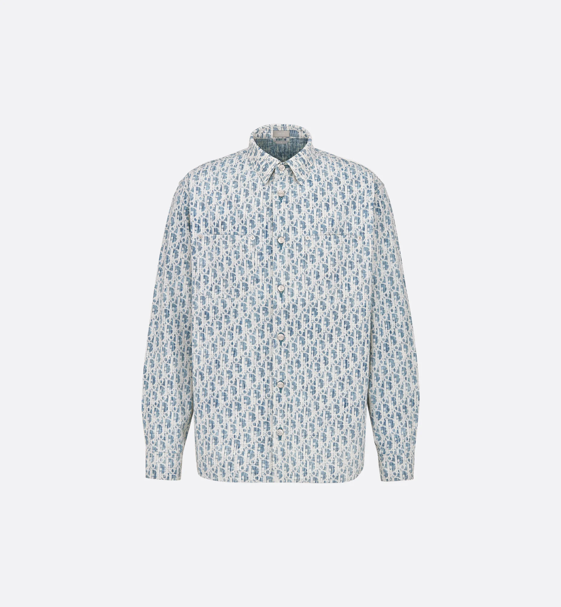 The overshirt highlights the hallmark Dior Oblique motif in a version inspired by ancestral Japanese weaving techniques. Crafted in blue and white cotton denim, it features an allover bleached effect and selvedge details. The overshirt can be worn with matching jeans to complete the look. - White allover Dior Oblique Kasuri motif - Selvedge details - Visible button placket - Dior-engraved buttons - Chest patch pockets - 100% cotton - Made in Japan Size & Fit - Size 37: neck circumference: 40 cm / 15.5 inches, shoulder to shoulder width: 48 cm / 19 inches, chest size: 112 cm / 44 inches, outside and inside sleeve lengths: 65 and 56 cm / 25.5 and 22 inches, garment length: 78 cm / 30.5 inches - Size 38: neck circumference: 40.5 cm / 16 inches, shoulder to shoulder width: 48 cm / 19 inches, chest size: 116 cm / 45.5 inches, outside and inside sleeve lengths: 65 and 56 cm / 25.5 and 22 inches, garment length: 78 cm / 30.5 inches - Size 39: neck circumference: 42 cm / 16.5 inches, shoulder to shoulder width: 49 cm / 19.5 inches, chest size: 120 cm / 47 inches, outside and inside sleeve lengths: 66 and 56 cm / 26 and 22 inches, garment length: 79 cm / 31 inches - Size 40: neck circumference: 43 cm / 17 inches, shoulder to shoulder width: 51 cm / 20 inches, chest size: 124 cm / 49 inches, outside and inside sleeve lengths: 66 and 57 cm / 26 and 22.5 inches, garment length: 80 cm / 31.5 inches - Size 41: neck circumference: 43 cm / 17 inches, shoulder to shoulder width: 51 cm / 20 inches, chest size: 126 cm / 49.5 inches, outside and inside sleeve lengths: 66 and 57 cm / 26 and 22.5 inches, garment length: 80 cm / 31.5 inches - Size 42: neck circumference: 45 cm / 17.5 inches, shoulder to shoulder width: 53 cm / 21 inches, chest size: 132 cm / 52 inches, outside and inside sleeve lengths: 67 and 57 cm / 26.5 and 22.5 inches, garment length: 81 cm / 32 inches - Size 43: neck circumference: 46 cm / 18 inches, shoulder to shoulder width: 54 cm / 21.5 inches, chest size: 136 cm / 53.5 inches, outside and inside sleeve lengths: 68 and 57 cm / 27 and 22.5 inches, garment length: 81 cm / 32 inches - Size 44: neck circumference: 48 cm / 19 inches, shoulder to shoulder width: 55 cm / 21.5 inches, chest size: 140 cm / 55 inches, outside and inside sleeve lengths: 68 and 57 cm / 27 and 22.5 inches, garment length: 81 cm / 32 inches - Each measurement may have a normal variation of 2 cm / 1 inch - Using our personalized tool will provide you with the best size recommendation - For more information, please review the size guide