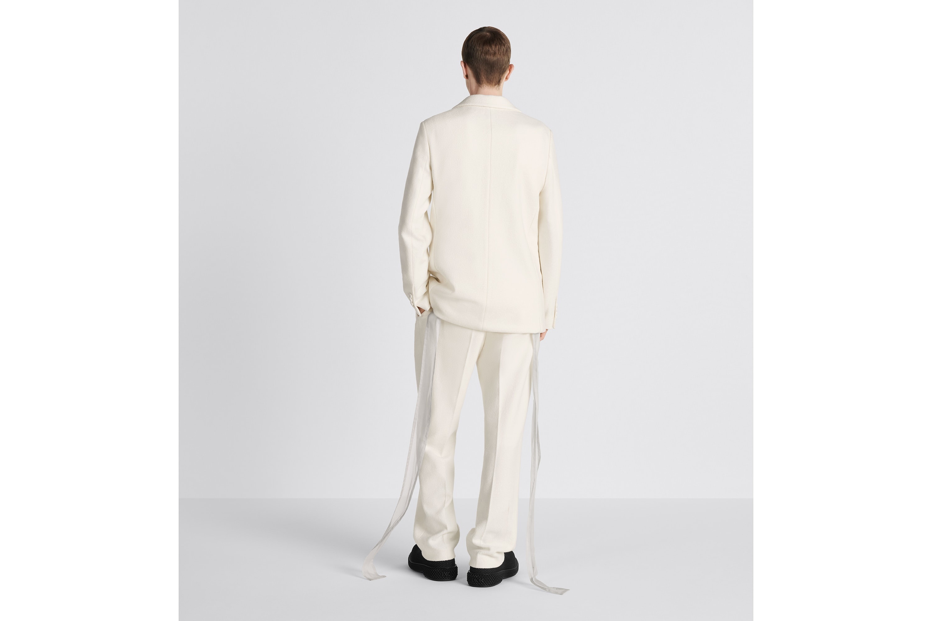 Unveiled at the Winter 2023-2024 fashion show, the pleated pants are crafted in ecru virgin wool-blend felted jersey enhanced by a crease on the front and back of the leg. They feature two side welt pockets and two rear piped pockets. The pants can be effortlessly paired with a jacket or sweatshirt for a more laid-back look. - Pleats on the front and back of the leg - Belt loops - Zip and clasp closure - Side welt pockets - Piped back pockets - 88% virgin wool, 12% polyamide and lining: 100% viscose - Made in Italy - Runway Look 3 Size & Fit - Loose fit - Leg opening: 23 cm / 9 inches - For more information, please review the size guide