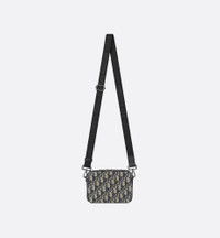 The zipped pouch with strap pays tribute to the Dior Oblique motif, first showcased on House creations in 1967. Crafted in beige and black jacquard, it features a two-way zip closure at the top and a front pocket with three card slots. An adjustable and removable black nylon jacquard Christian Dior shoulder strap is completed by two signature ruthenium-finish brass snap hooks. Featuring an embossed Dior signature, the style has a streamlined and spacious interior with a slip pocket to safely hold essentials. The pouch is a modern piece that will add a touch of elegance to any outfit. - Main composition: cotton, technical fabric and calfskin - Technical fabric and calfskin lining - Main zip compartment - Double zip pocket - Interior slip pocket - Three card slots - Adjustable and removable Christian Dior nylon jacquard shoulder strap - Exterior ruthenium-finish brass Dior signature - Embossed Dior signature on the interior - Dust bag included - Made in Italy/Spain Size & Fit - Dimensions: 17 x 12.5 x 5 cm / 6.5 x 5 x 2 inches (Length x Height x Width)