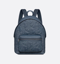 The Rider 2.0 zipped backpack offers a new version of a House staple. The style is constructed in navy blue Dior Gravity Outline leather, a grained calfskin embossed with the iconic House motif for a 3D effect with graphic appeal, further accented by a Dior signature on the front. A zip closure and adjustable padded shoulder straps make it an ideal daily accessory. - Main composition: calfskin and technical fabric - Technical fabric, cotton and calfskin lining - Main zip compartment - Interior flat compartment for laptop - Interior slip pocket - Front zip pocket - Leather top handle - Adjustable padded shoulder straps - Padded mesh back with Dior signature - Ruthenium-finish brass Dior signature on the front - Embossed Dior signature on the interior - Dust bag included - Made in Italy Size & Fit - Dimensions: 32 x 43 x 19 cm / 12.5 x 17 x 7.5 inches (Length x Height x Width) - The main compartment's size is suitable for a 15-inch laptop computer, A4 documents and a tablet - Weight: 1.2 kg / 2.5 pounds - Size and weight details may vary depending on the product's material