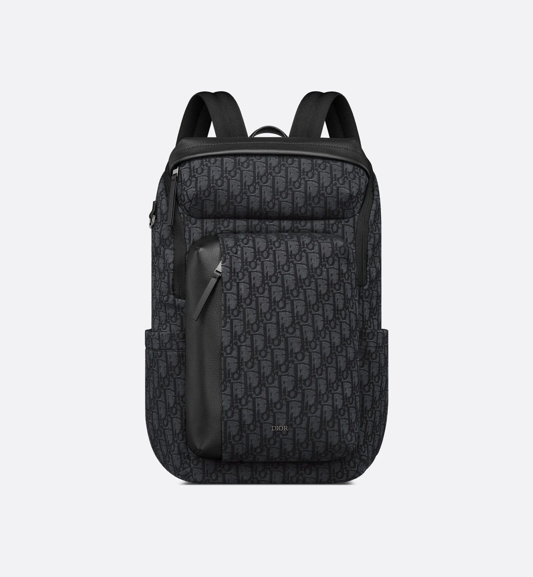New for Fall 2025, the Rider Soft zipped backpack is a modern and functional silhouette. Crafted in black Dior Oblique jacquard, it is enhanced by tonal grained calfskin details and the Dior signature. The zip compartment provides a large opening, while the interior slip pocket, two zip pockets on the front and two side slip pockets can house all the essentials. Accessories can be attached to the D-ring. Completed by adjustable padded shoulder straps, the backpack will make an ideal daily companion. - Main composition: cotton, technical fabric and calfskin - Technical fabric, cotton and calfskin lining - Main zip compartment - Interior flat compartment for laptop - Interior slip pocket - Two zip pockets on the front - Two side slip pockets - D-ring to attach accessories - Leather top handle - Adjustable padded shoulder straps - Padded mesh back with Dior signature - Ruthenium-finish brass Dior signature on the front - Embossed Dior signature on the interior - Dust bag included - Made in Italy Size & Fit - Dimensions: 32 x 46 x 17.5 cm / 12.5 x 18 x 7 inches (Length x Height x Width) - The main compartment's size is suitable for a 15-inch laptop computer, A4 documents and a tablet - Weight: 1.3 kg / 3 pounds - Size and weight details may vary depending on the product's material